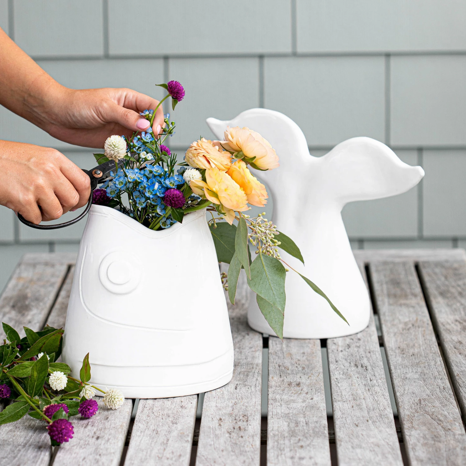Inspired by the aquatic life of the Tyrrhenian Sea, the Acquatico White Medium Fish Head & Tail Set is a playful handcrafted vase fitting for any beach admirer.