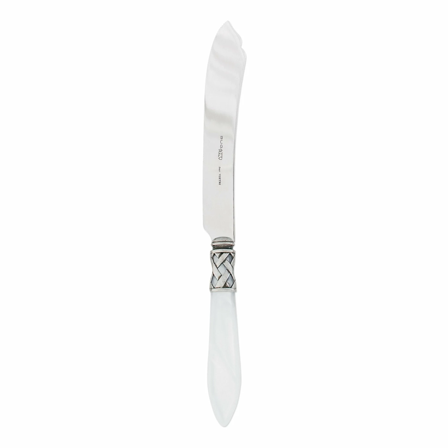 The Aladdin Antique Cake Knife features elegant pearlized handles with the strength of high-grade acrylic and 18/10 stainless steel. This piece is also available in our brilliant finish.