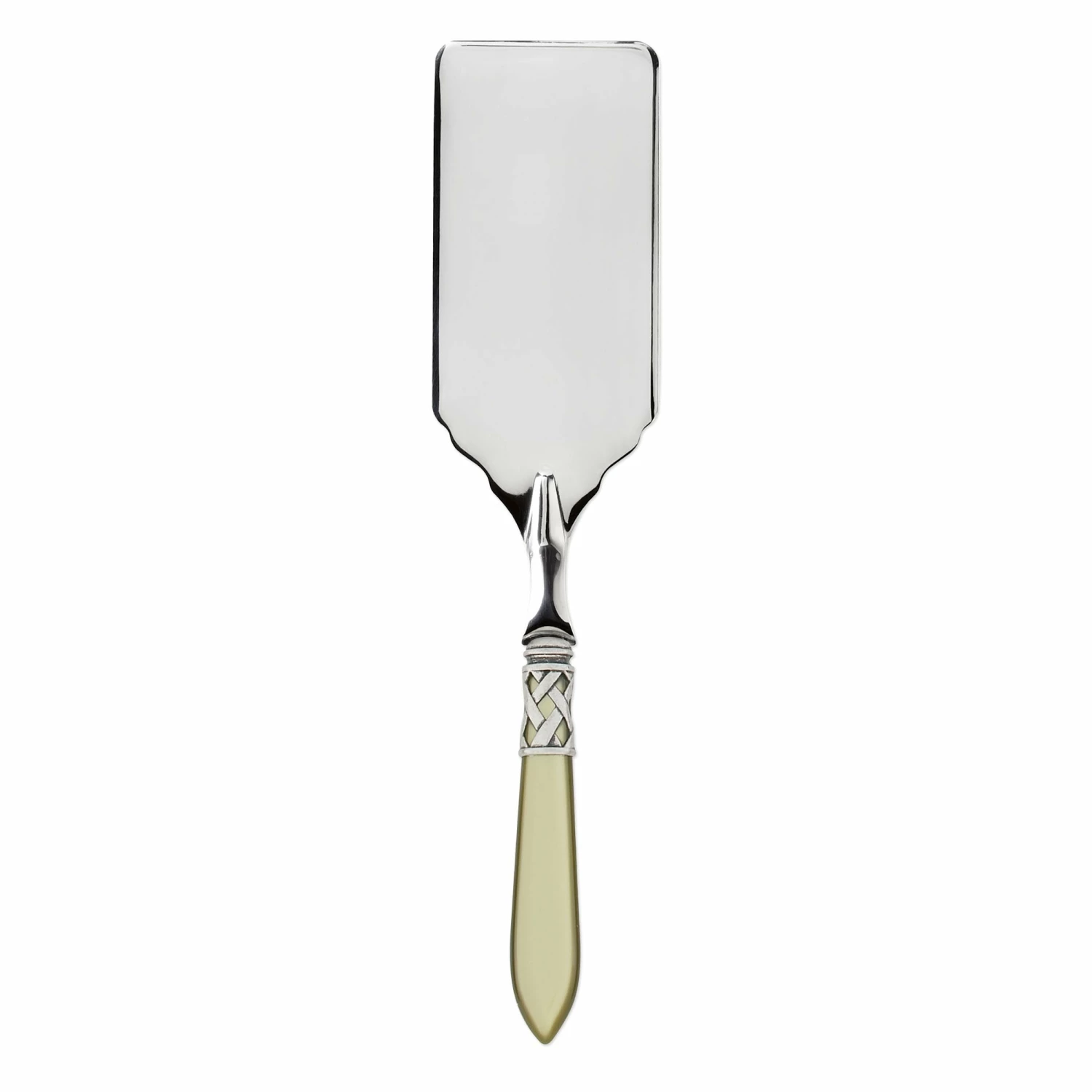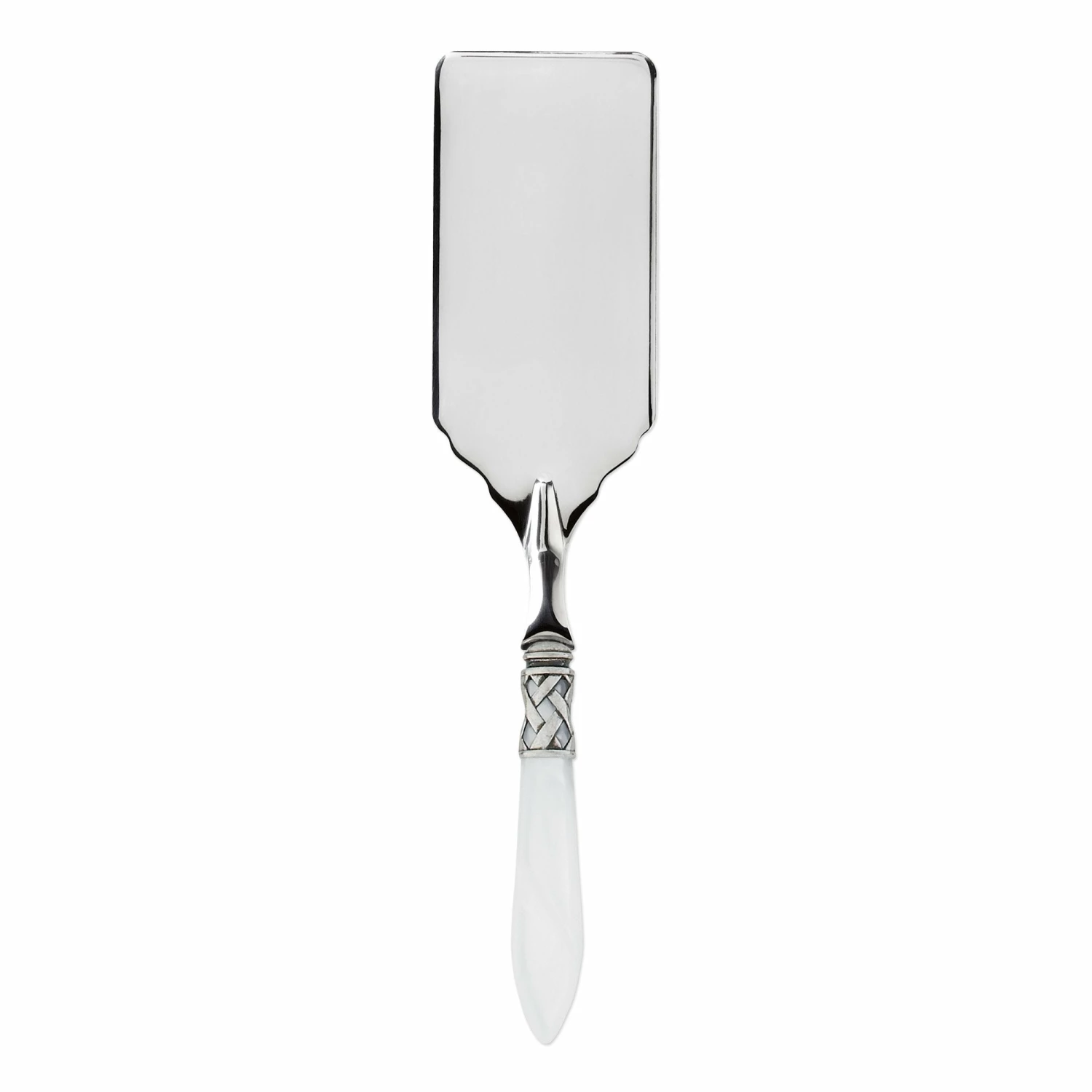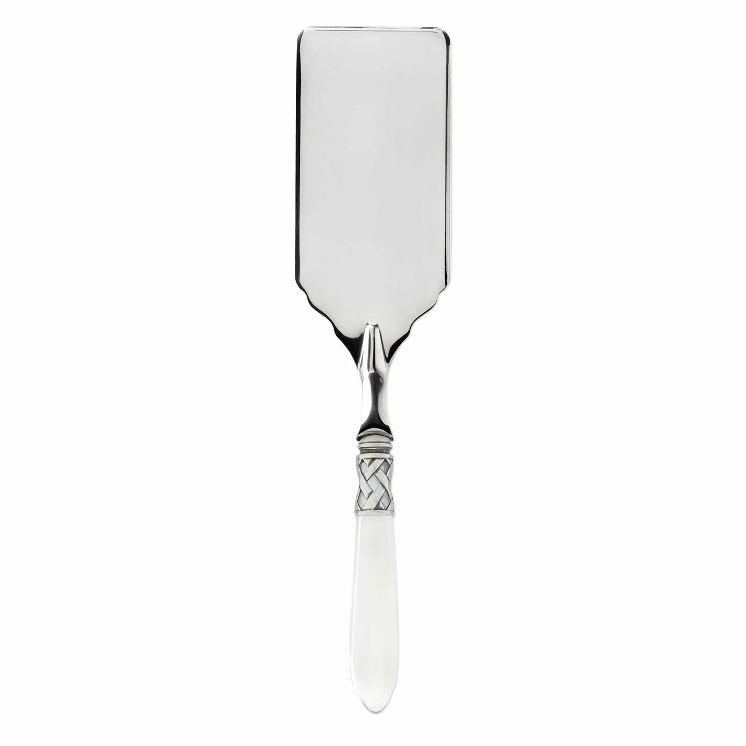 The Aladdin Antique Lasagna Server features elegant pearlized handles with the strength of high-grade acrylic and 18/10 stainless steel. This piece is also available in our brilliant finish.