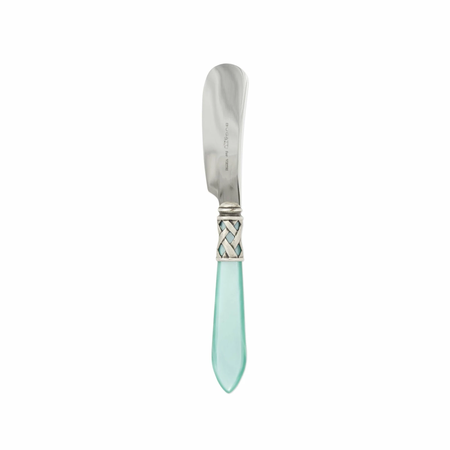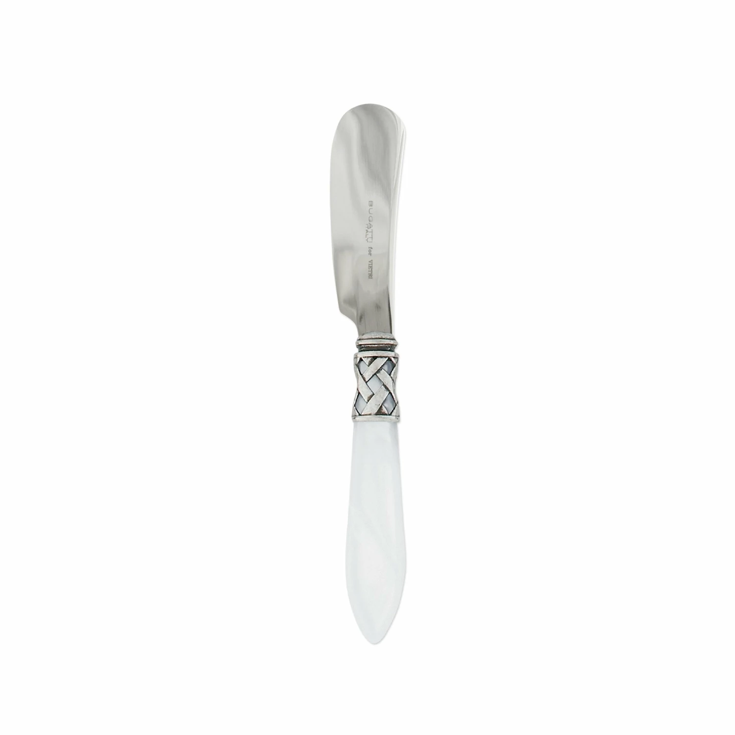 The Aladdin Antique Small Spreader features elegant pearlized handles with the strength of high-grade acrylic and 18/10 stainless steel. This piece is also available in our brilliant finish.