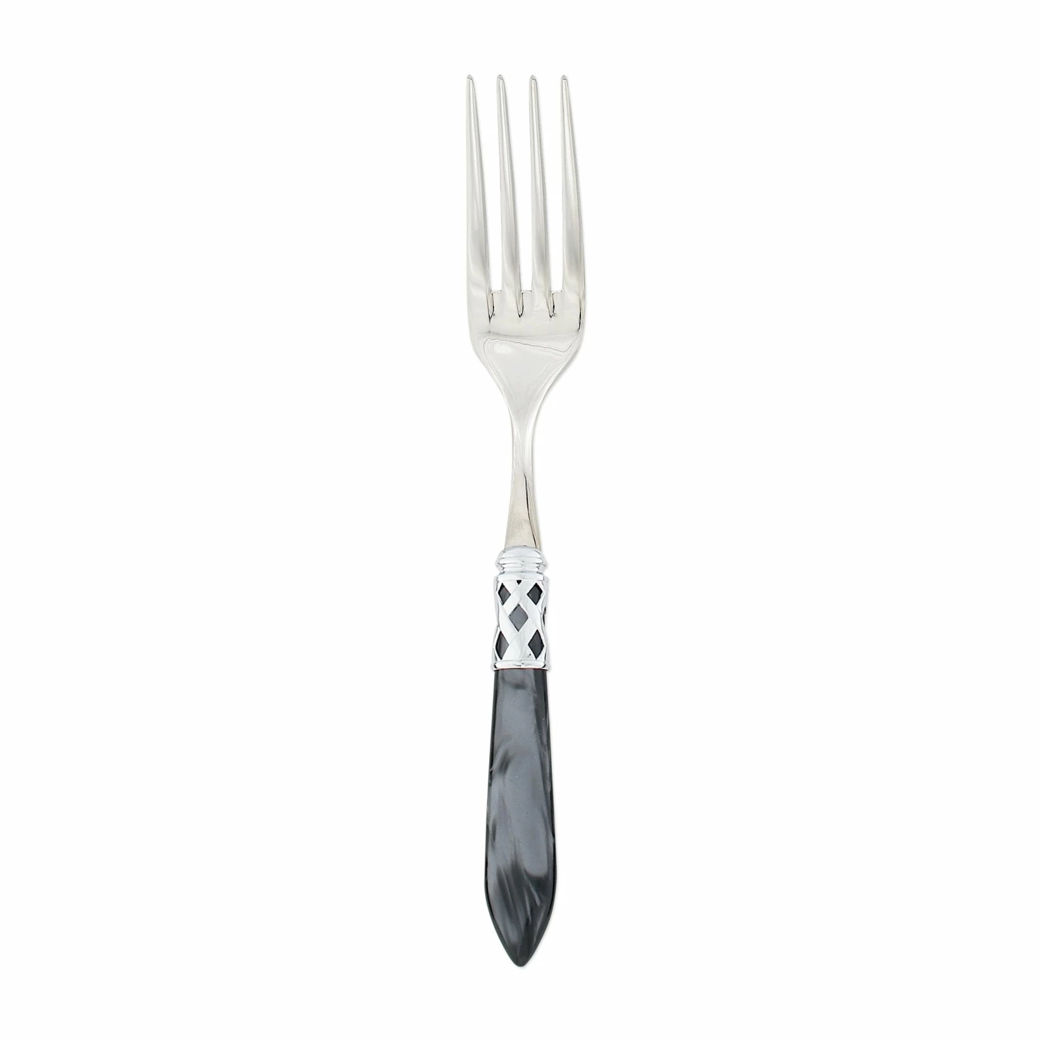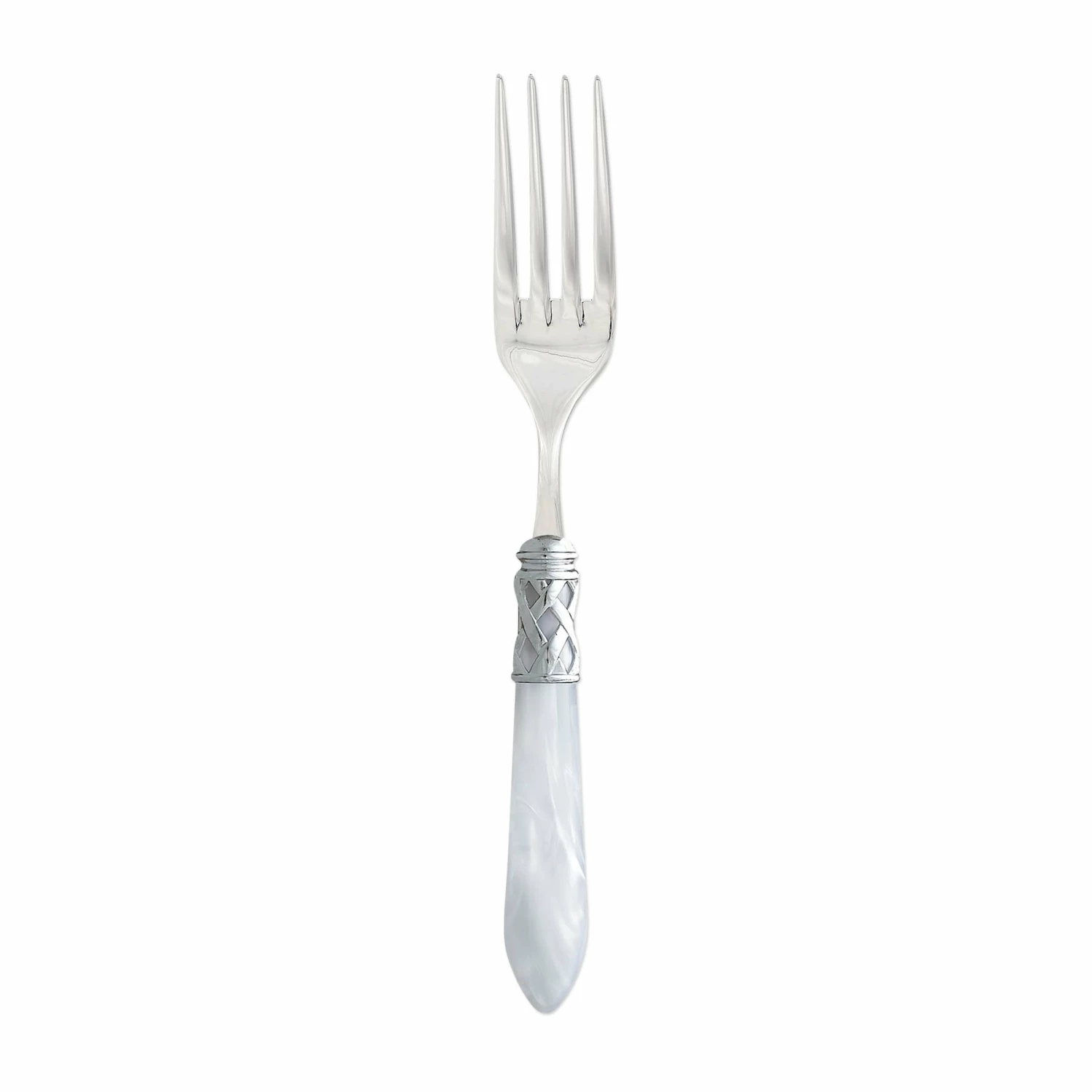 The Aladdin Brilliant Serving Fork features elegant pearlized handles with the strength of high-grade acrylic and 18/10 stainless steel. This piece is also available in our antique finish.