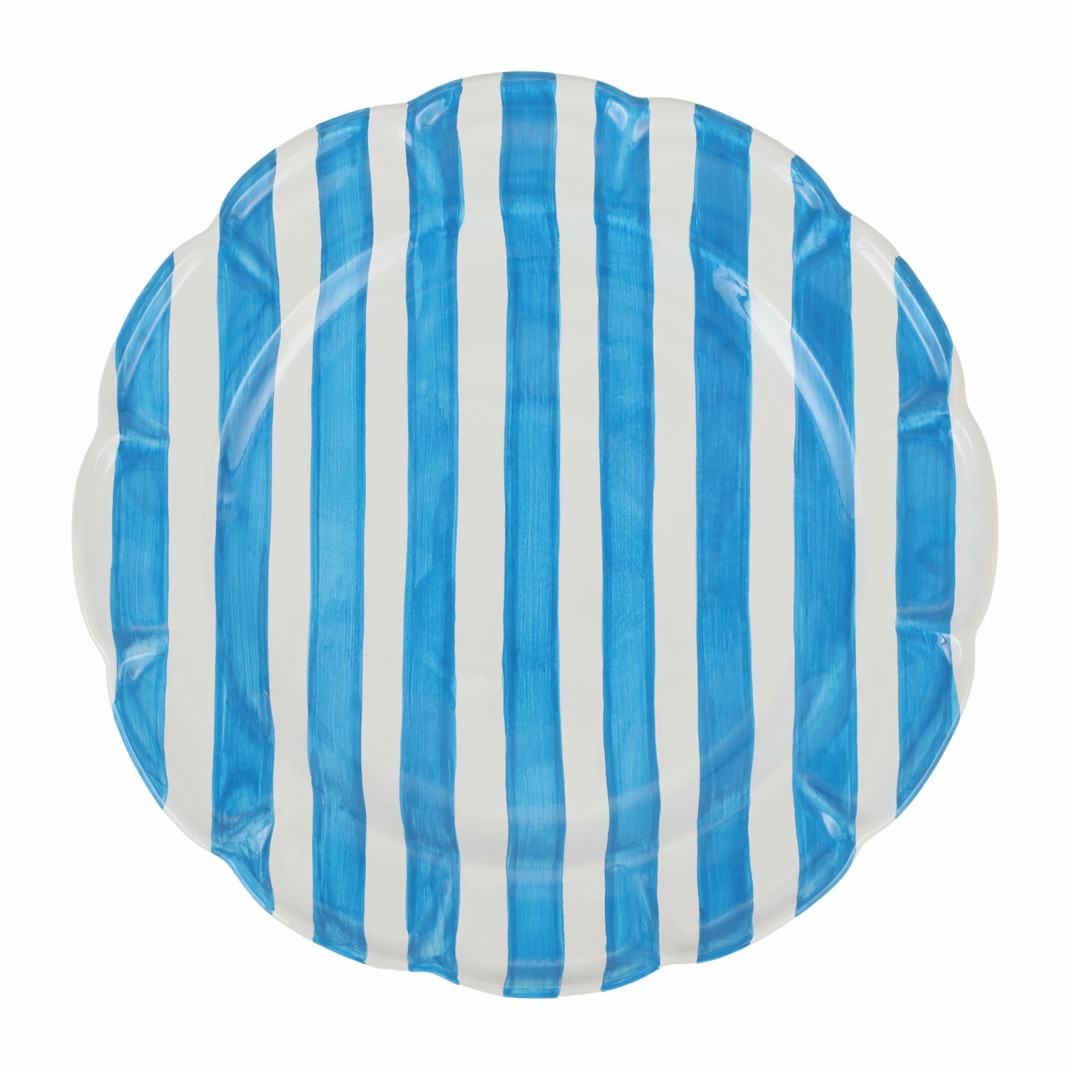 The Amalfitana Aqua Stripe Round Platter pays homage to the Amalfi Coast’s fresh seaside style, and its bold hues and crisp design bring a vibrant and lively look to everything you serve.