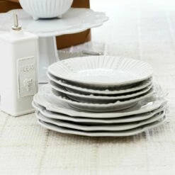 The Amalfitana Aqua Stripe Salad Plate pays homage to the Amalfi Coast’s fresh seaside style, and its bold hues and crisp design bring a vibrant and lively look to your table.