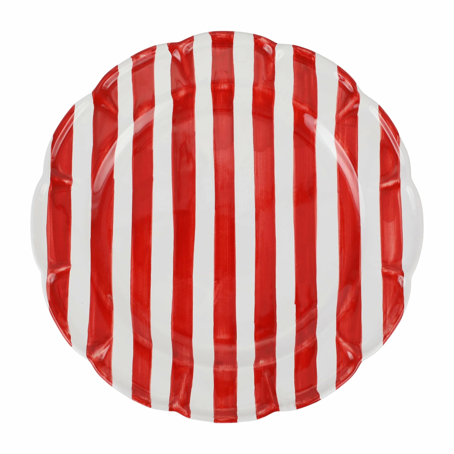 The Amalfitana Red Stripe Round Platter pays homage to the Amalfi Coast’s fresh seaside style, and its bold hues and crisp design bring a vibrant and lively look to everything you serve.