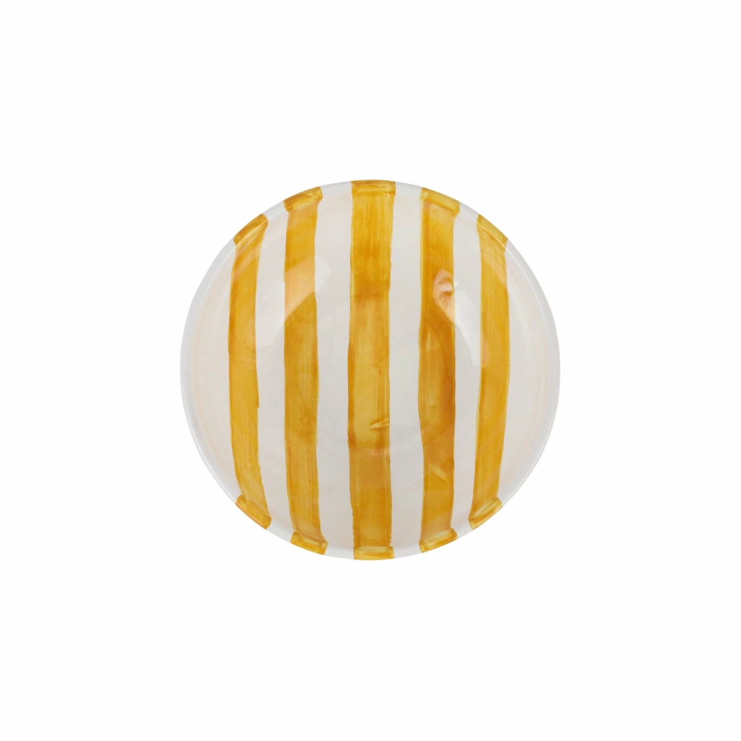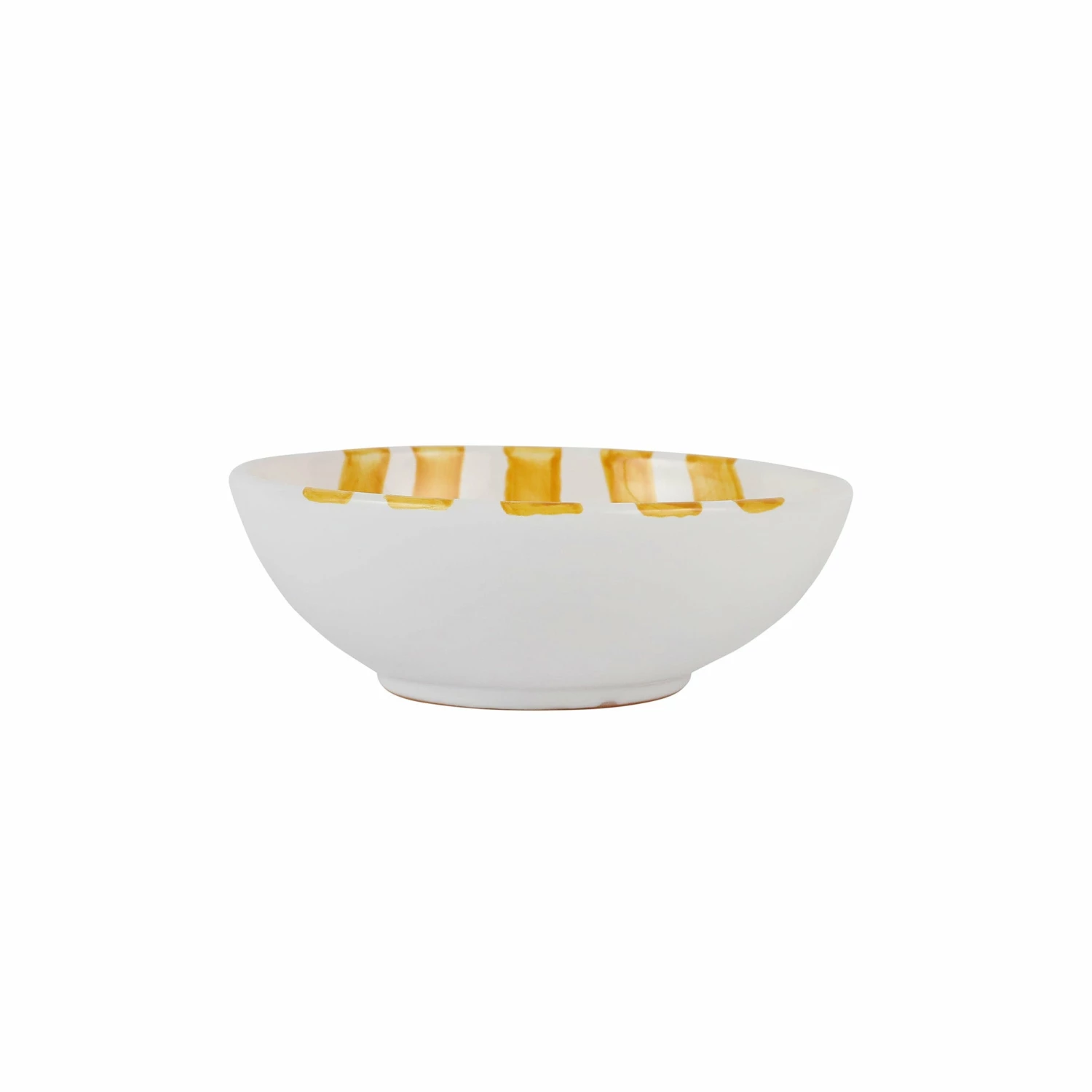 The Amalfitana Yellow Stripe Cereal Bowl pays homage to the Amalfi Coast’s fresh seaside style, and its bold hues and crisp design bring a vibrant and lively look to your table.