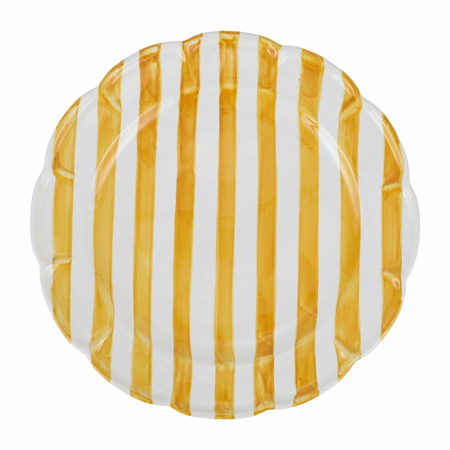 The Amalfitana Yellow Stripe Round Platter pays homage to the Amalfi Coast’s fresh seaside style, and its bold hues and crisp design bring a vibrant and lively look to everything you serve.