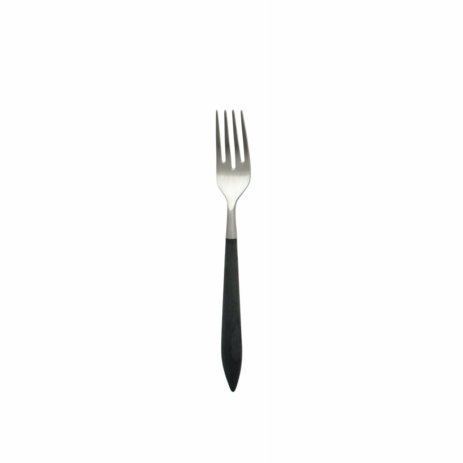 The contemporary matte handle found on the Ares Argento & Black Salad Fork provides perfect balance and weight for a luxury flatware experience. Argento, the brushed silver, finishes off the utensil in 18/10 stainless steel.