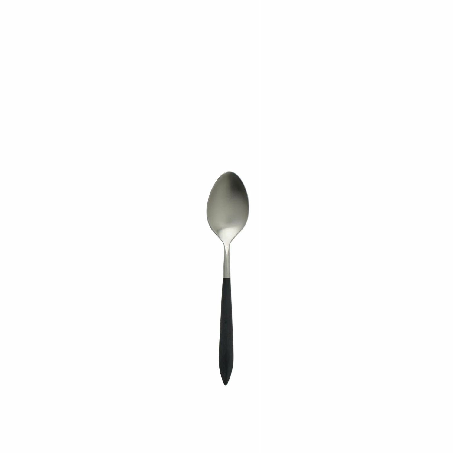 The contemporary matte handle found on the Ares Argento & Black Teaspoon provides perfect balance and weight for a luxury flatware experience. Argento, the brushed silver, finishes off the utensil in 18/10 stainless steel.