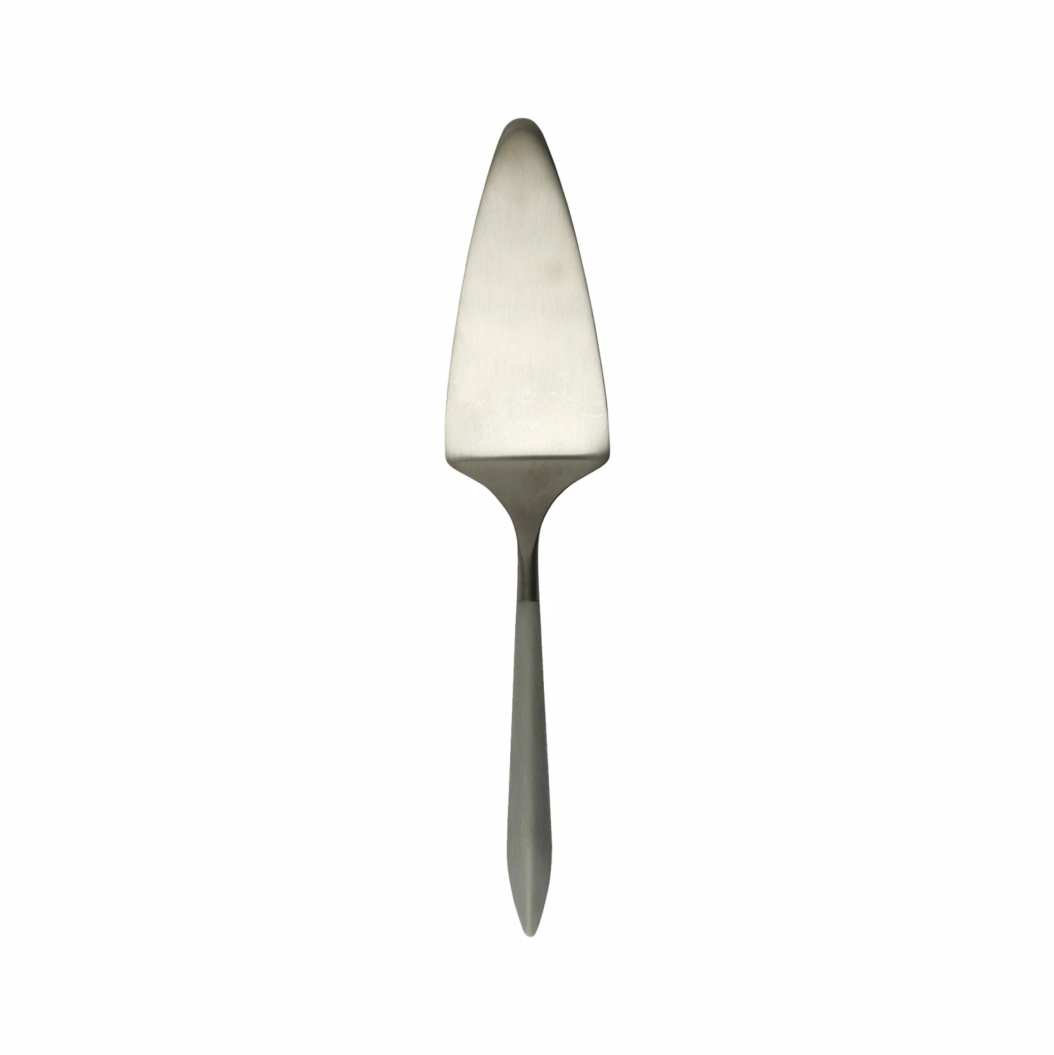 The contemporary matte handle found on the Ares Argento & Light Gray Pastry Server provides perfect balance and weight for a luxury flatware experience. Argento, the brushed silver, finishes off the utensil in 18/10 stainless steel.
