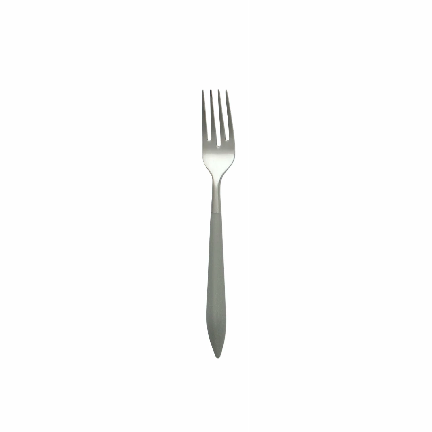 The contemporary matte handle found on the Ares Argento & Light Gray Salad Fork provides perfect balance and weight for a luxury flatware experience. Argento, the brushed silver, finishes off the utensil in 18/10 stainless steel.