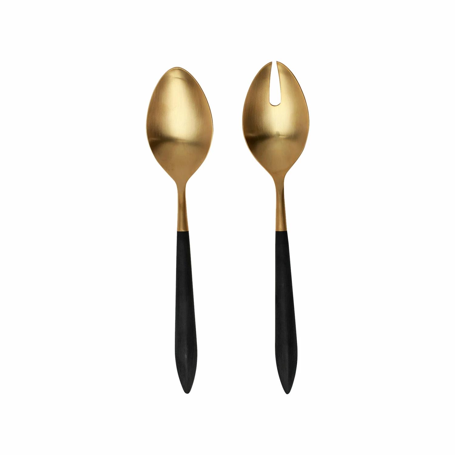 The contemporary matte handles found on the Ares Oro & Black Salad Serving Set provide perfect balance and weight for a luxury flatware experience. Oro, the brushed gold, finishes off the utensil in 18/10 stainless steel.