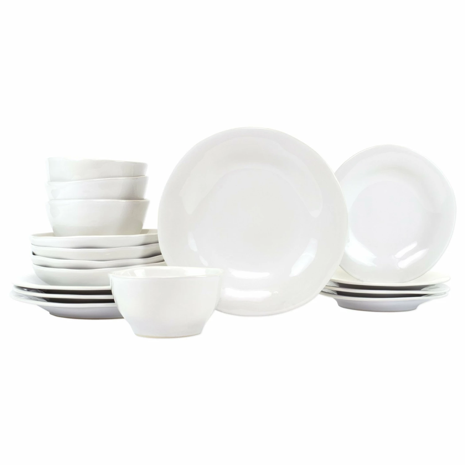 Handcrafted of durable stoneware in Veneto, the Aurora Snow Sixteen-Piece Place Setting is the unique result of a beautiful collaboration with maestro artisan, Francesco Venzo. The set includes 4 dinner plates, 4 salad plates, 4 pasta bowls, and 4 cereal bowls.