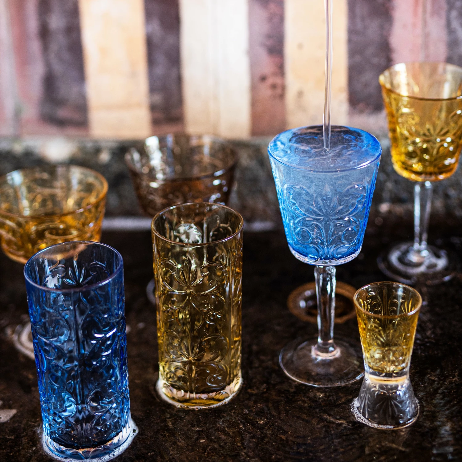 The artful etchings, stately shapes, and rich color of Barocco Cobalt High Ball honor Italyβs 17th century Baroque period and bring a gracious grandeur to your gatherings.