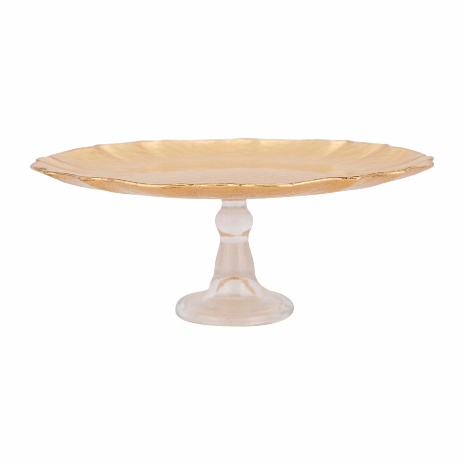 Create a stylish vibe with the Baroque Glass Gold Cake Stand, a sophisticated piece to add just touch of glimmer and glam to every sweet you serve.