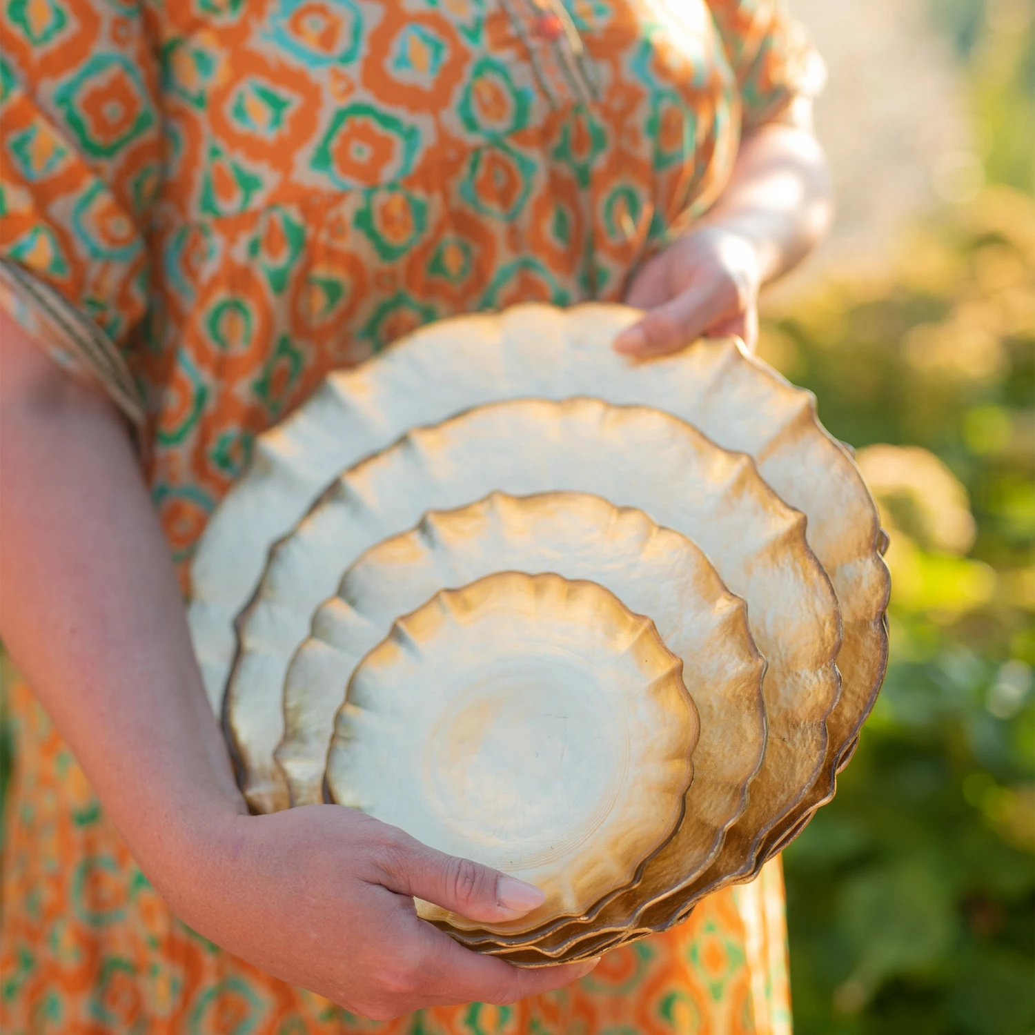 Create a stylish vibe with the Baroque Glass Salad Plate, the sophisticated piece every table needs to add just a touch of glimmer and glam.