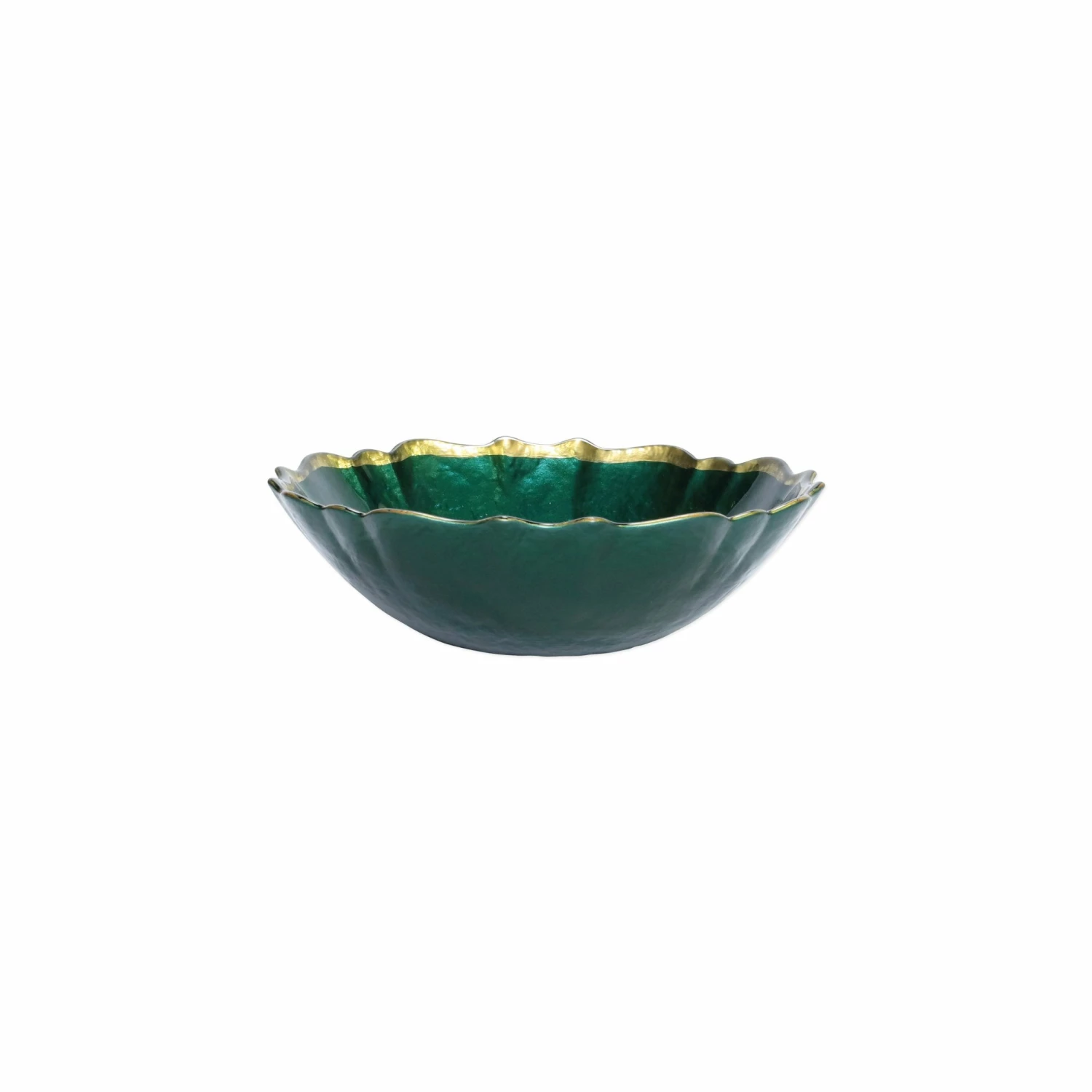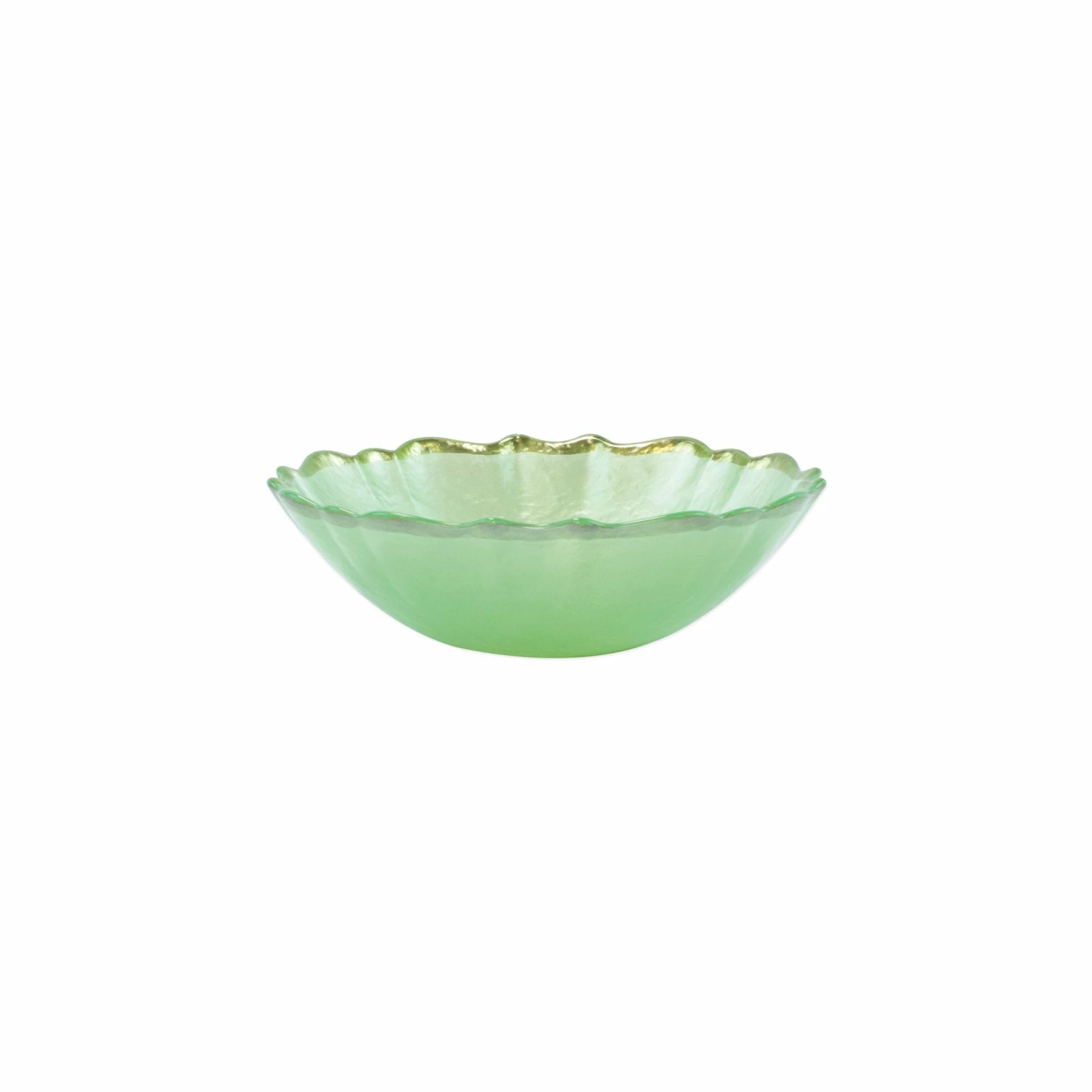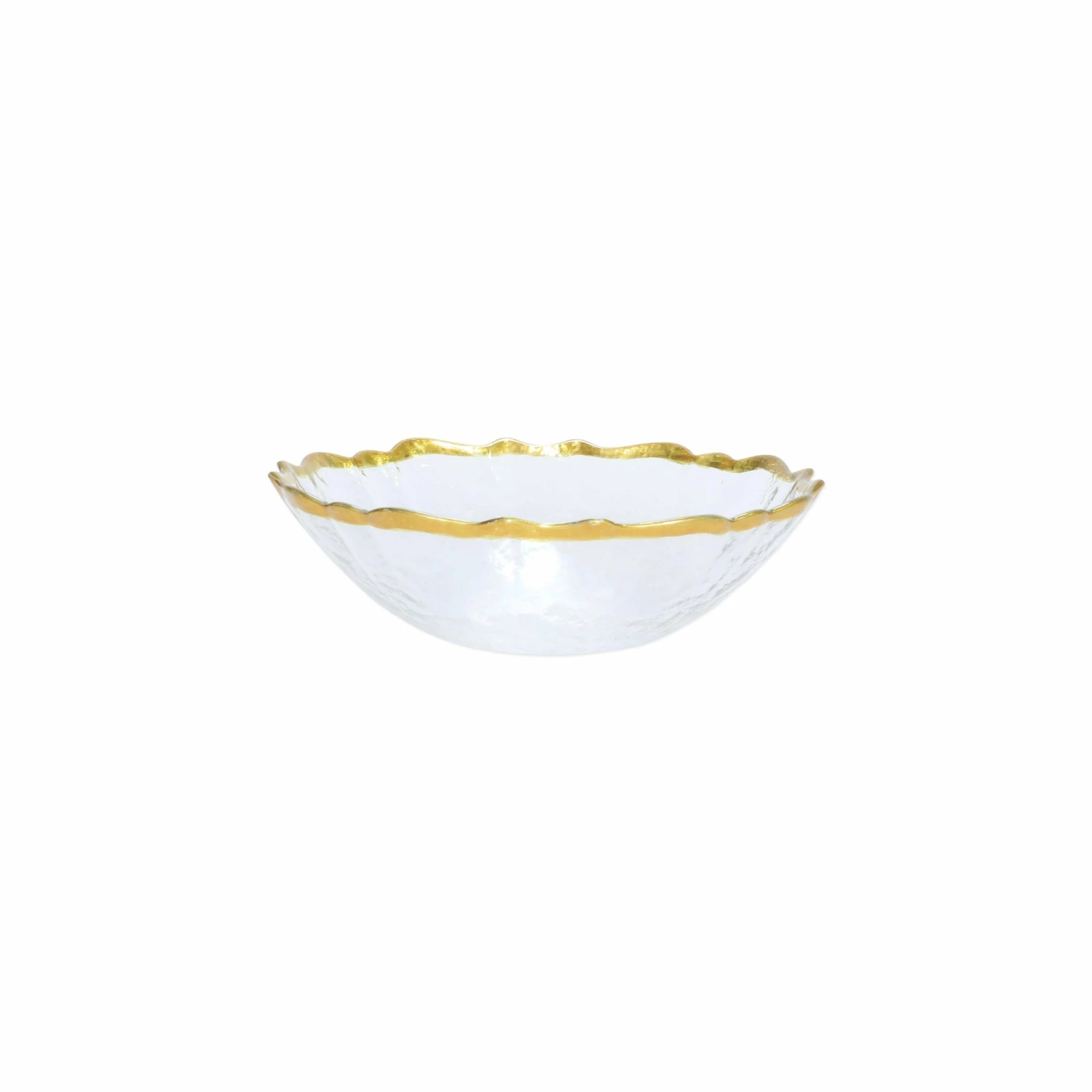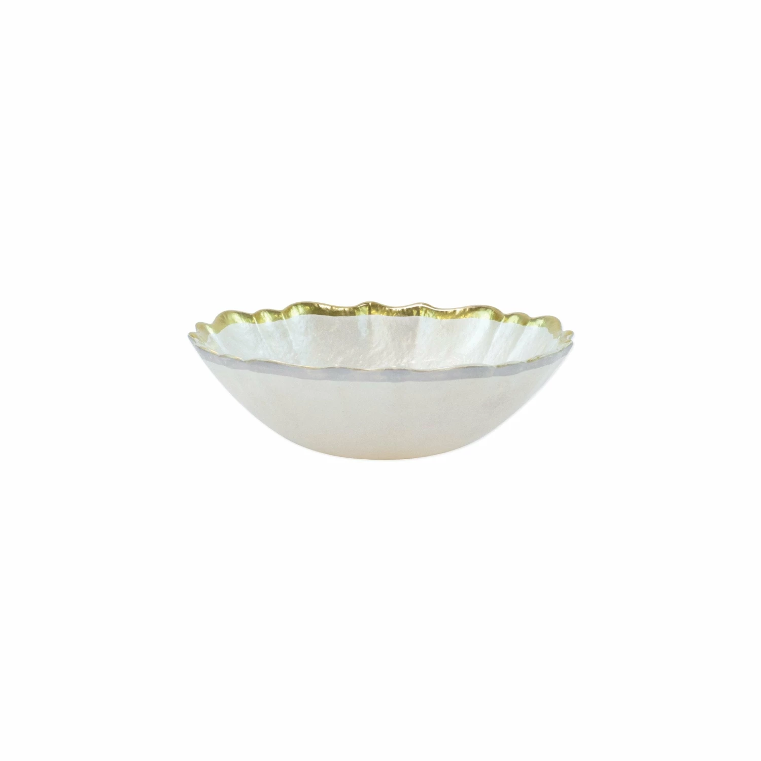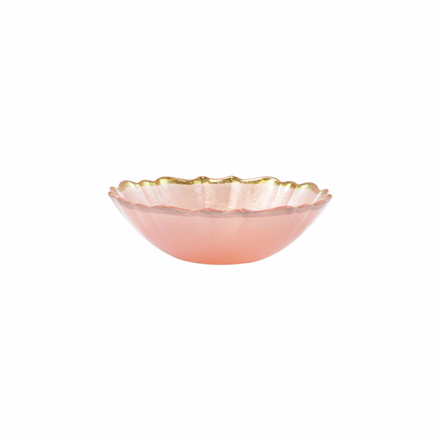Sophisticated yet fun, the Baroque Glass Small Bowl will be the center of attention at your next cocktail party. The gold rim and opalescent hue will not go unnoticed.