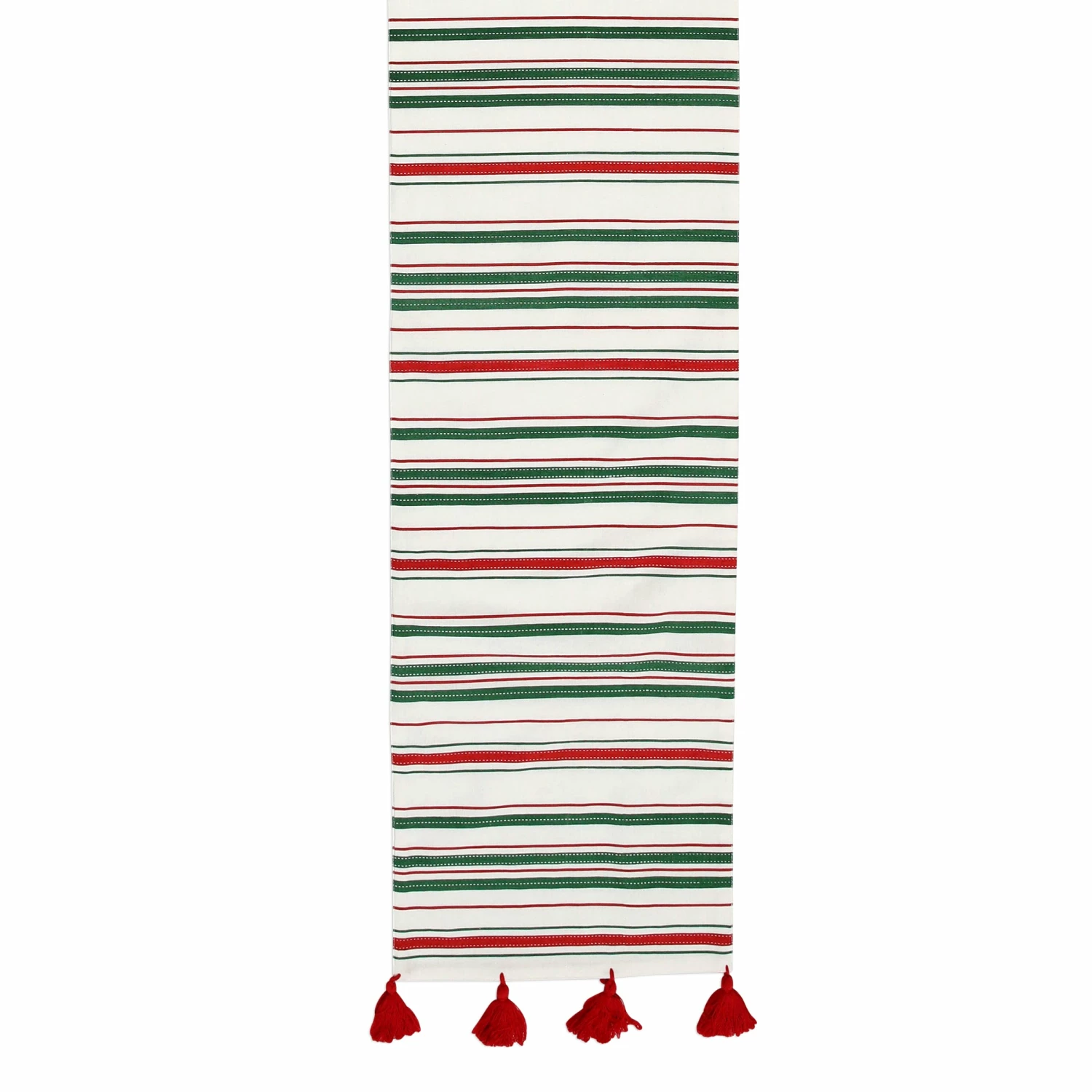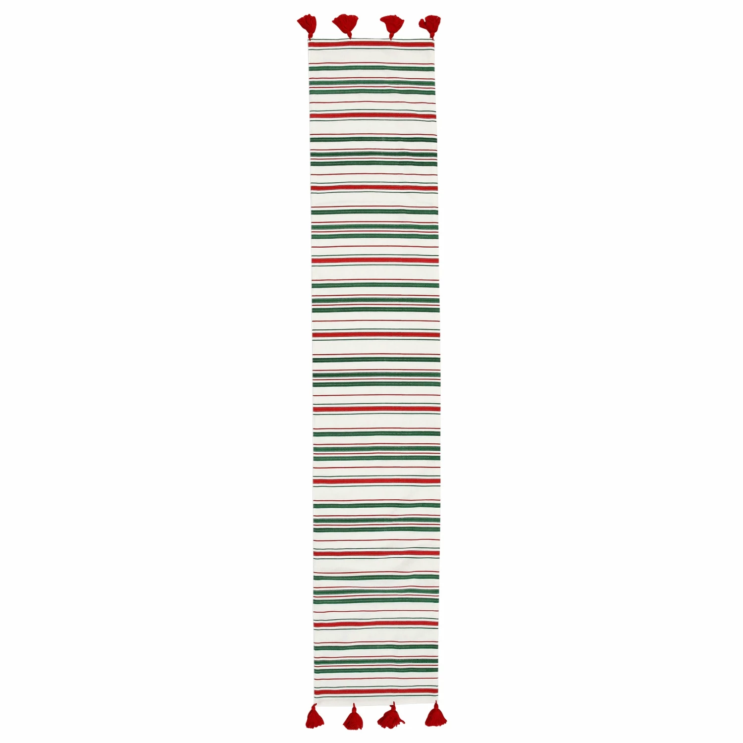 Festive and crisp, the Bohemian Linens Stripe Red/Green Runner brings a casual yet celebratory vibe to your table.