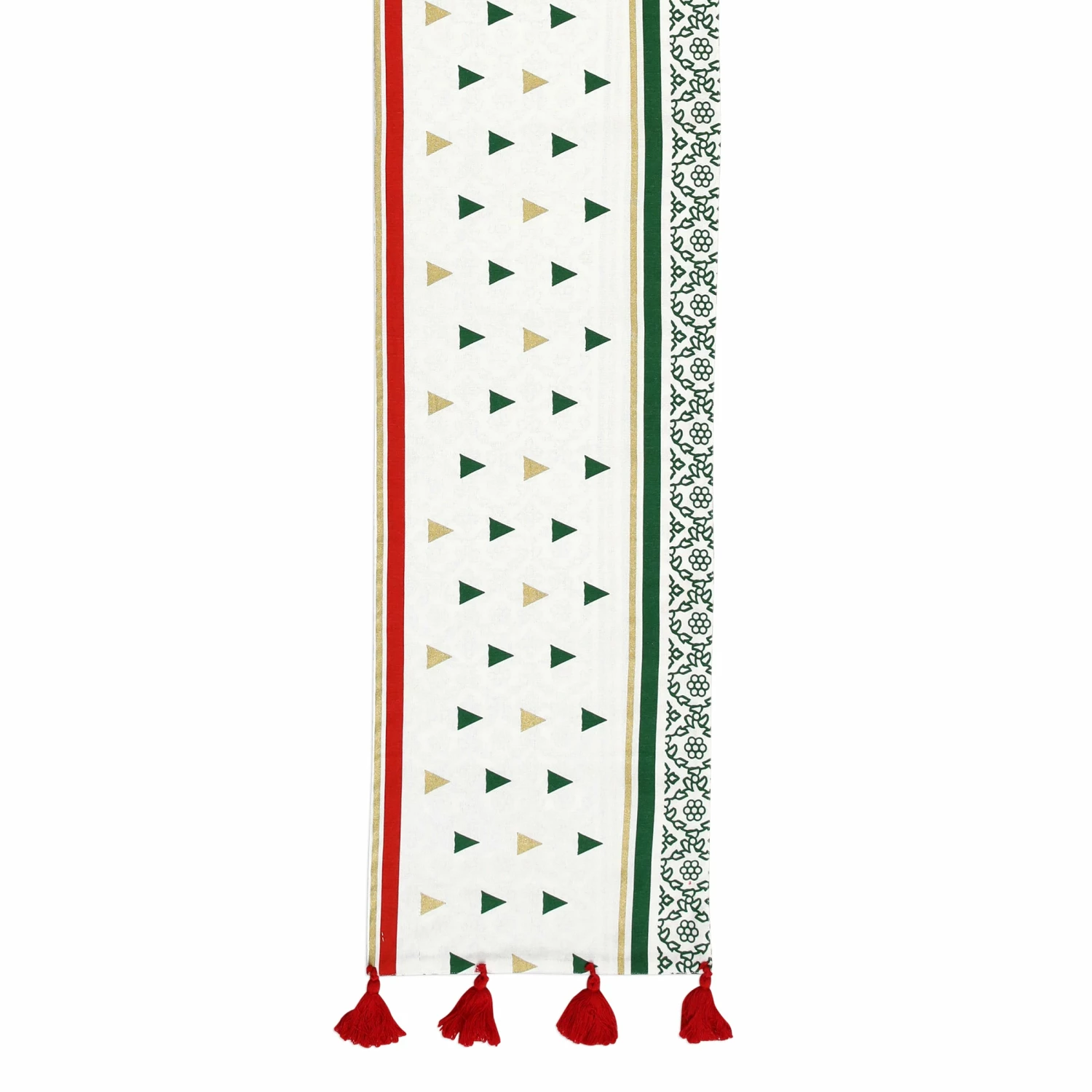 Festive and crisp, the Bohemian Linens Tree Green/Gold Runner brings a casual yet celebratory vibe to your table.