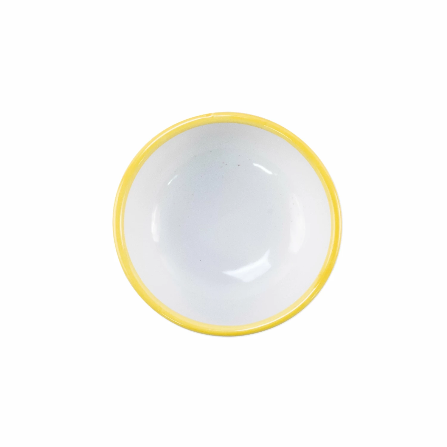 The colorful yellow and blue Campagna Cavallo Cereal/Soup Bowl features whimsical handpainted horses among beautiful wildflowers.