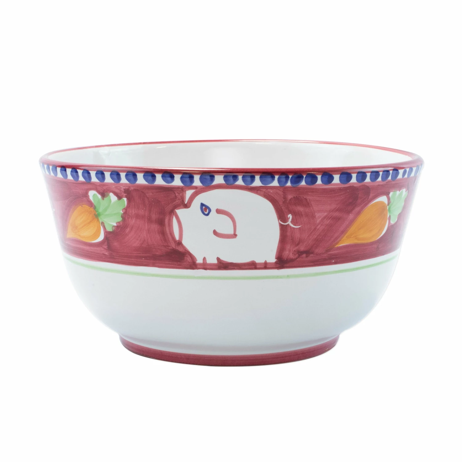 This colorful Campagna Porco Deep Serving Bowl features whimsical handpainted pigs and carrots.