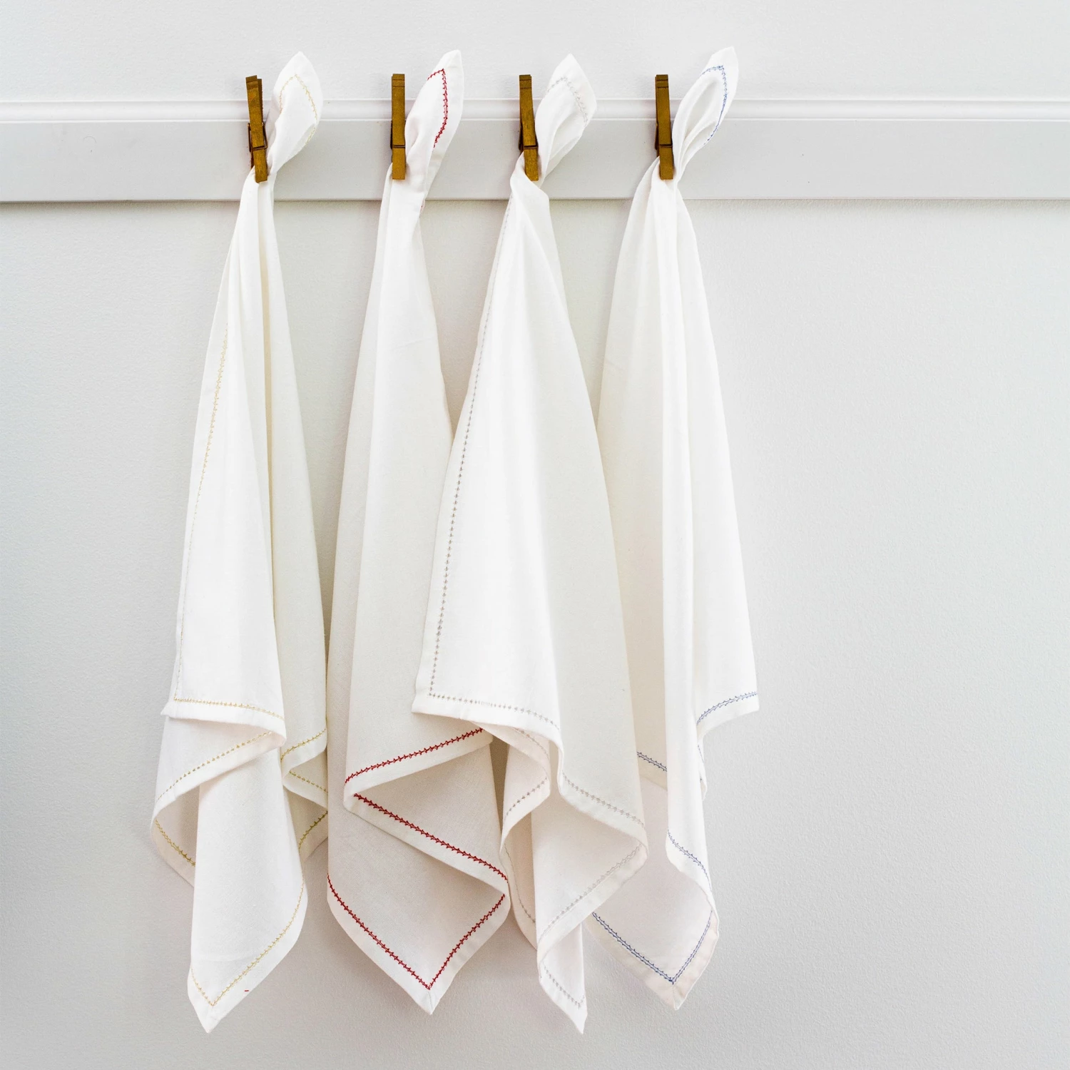 The Cotone Linens Ivory Napkins with Stitching – Set of 4 features a subtle yet elevated edge that can be dressed up or down depending on the occasion.