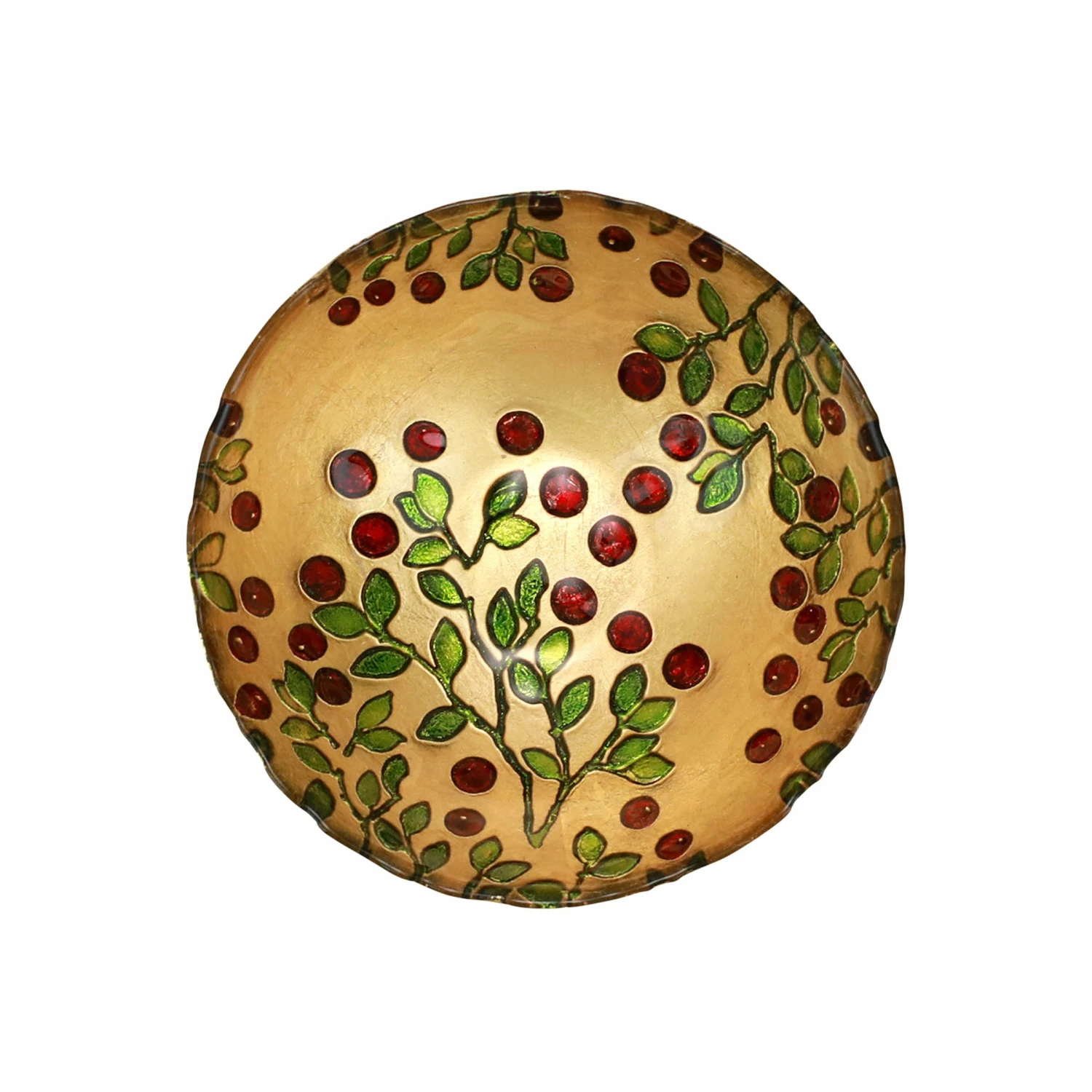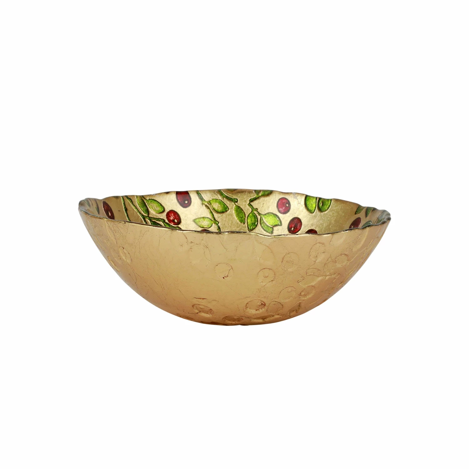 The traditional holiday berry adds elegance in gilded gold glass with accents of brilliant red and green on the Cranberry Glass Cereal Bowl.