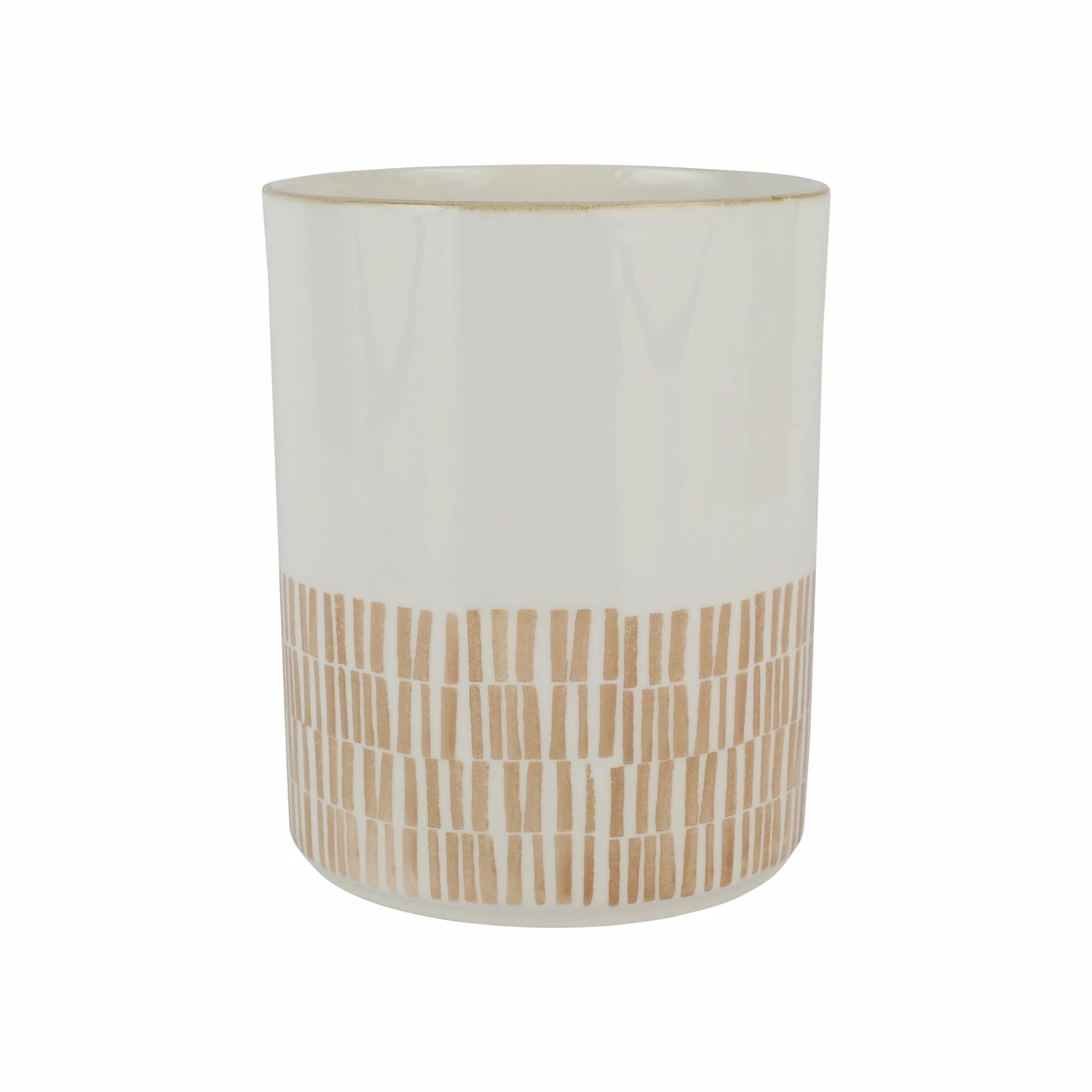 The Earth Bamboo Waste Basket combines mid-century neutral tones with an simple silhouette in a playful handpainted pattern.