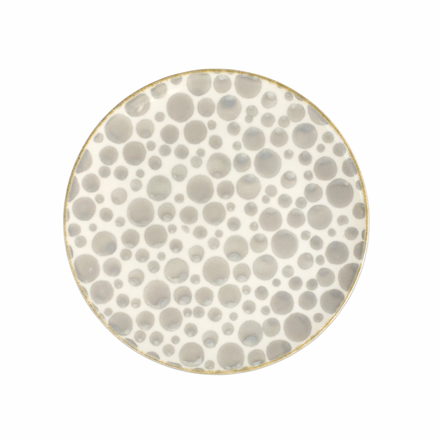 The Earth Bubble 3-piece Place Setting combines mid-century neutral tones with an simple silhouette in a playful handpainted pattern.