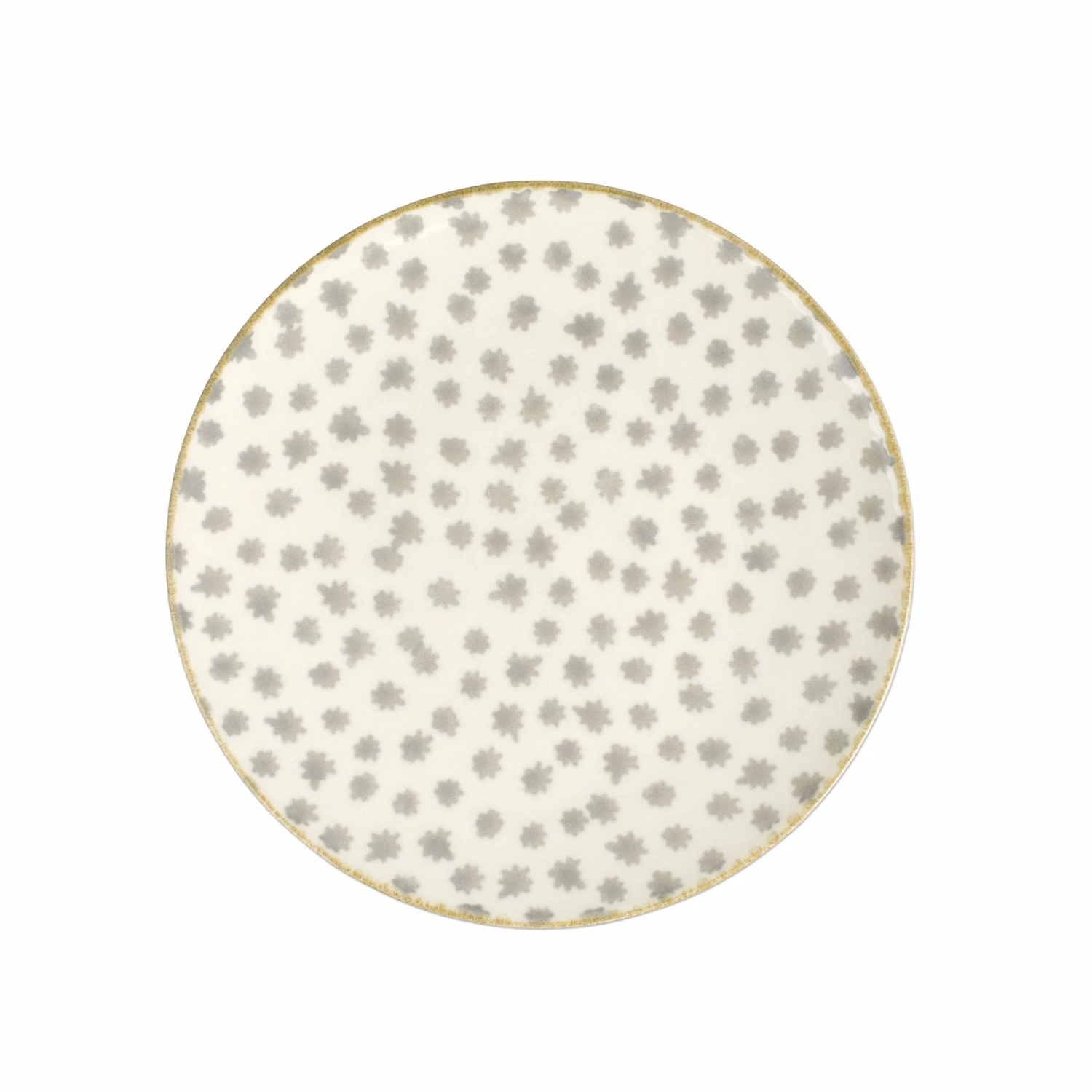 The Earth Flower Dinner Plate combines mid-century neutral tones with an simple silhouette in a playful handpainted pattern.