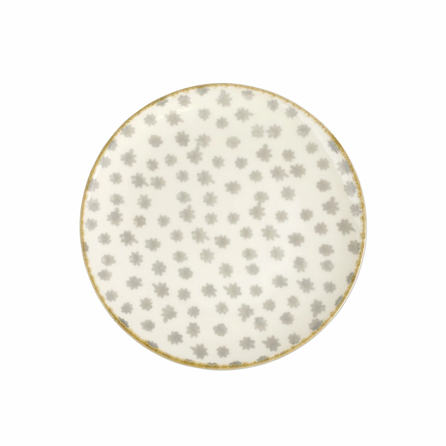 The Earth Flower Salad Plate combines mid-century neutral tones with an simple silhouette in a playful handpainted pattern.