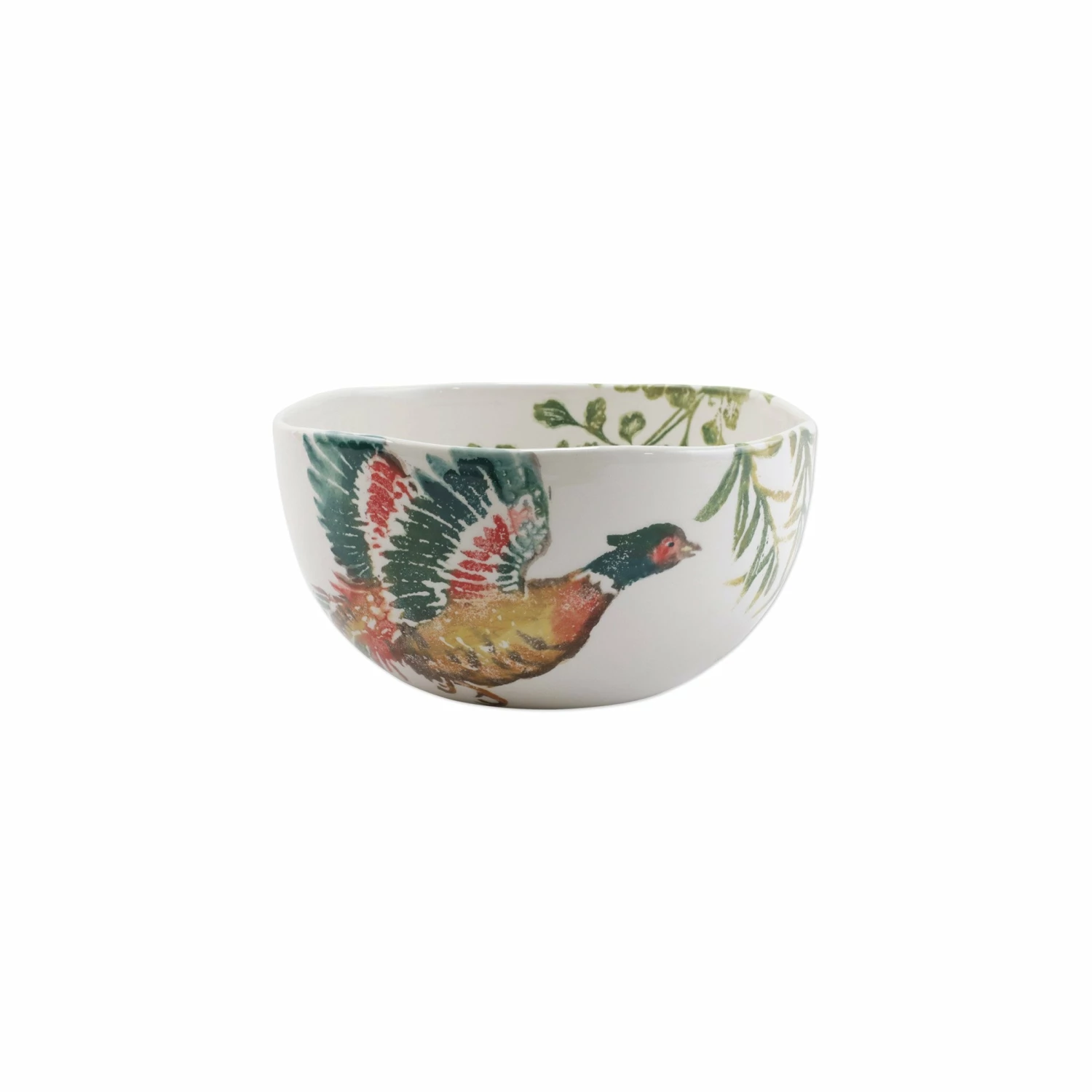 The Fauna Pheasants Deep Serving Bowl combines the outline of the classic hunting bird paired with natureβs greenery to depict what is commonly found during the hunt (la caccia) in Umbria, the Italian land known for capturing wild pheasants.