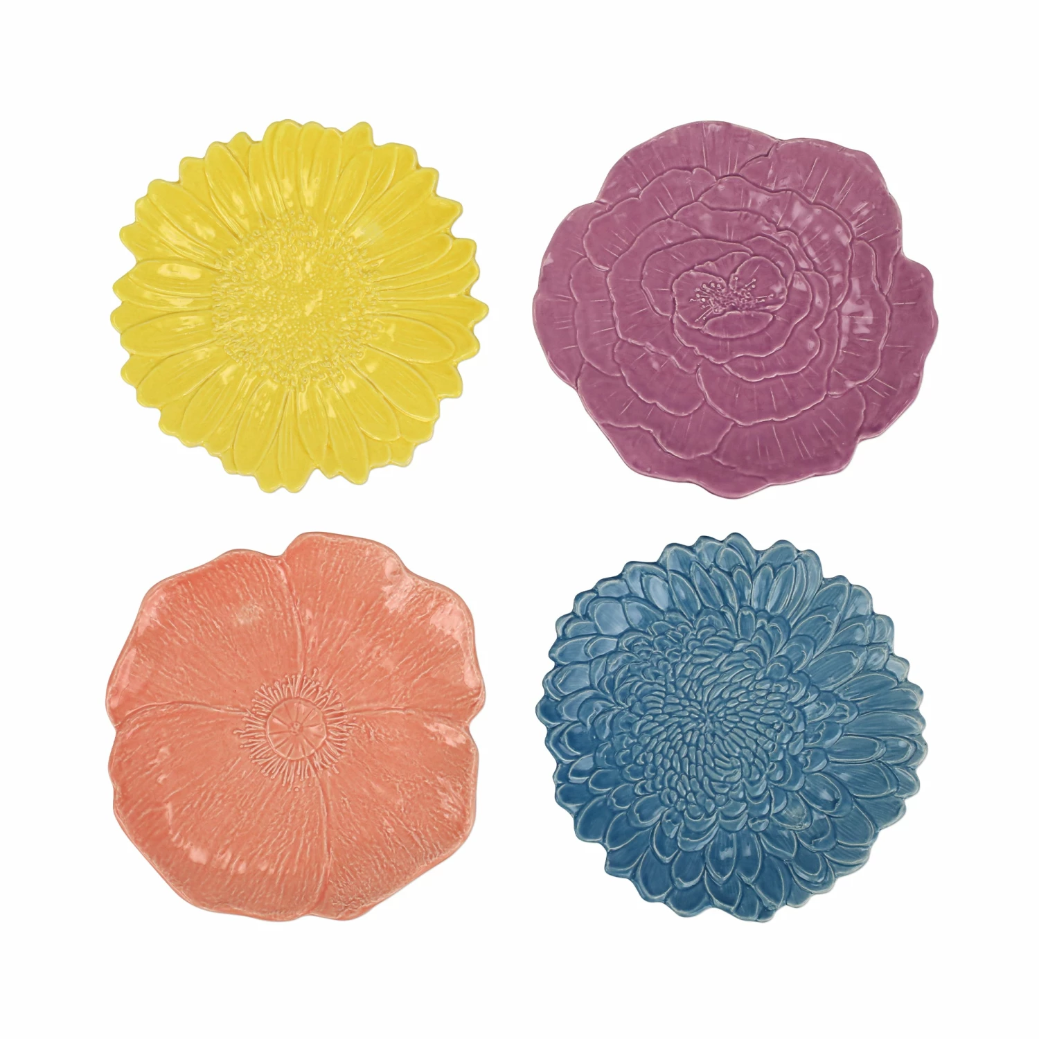 The Fiori di Campo Figural Assorted Salad Plates include an intricately detailed chrysanthemum, daisy, poppy, and rose, and they bring the splendor of mother nature to your table all year round.