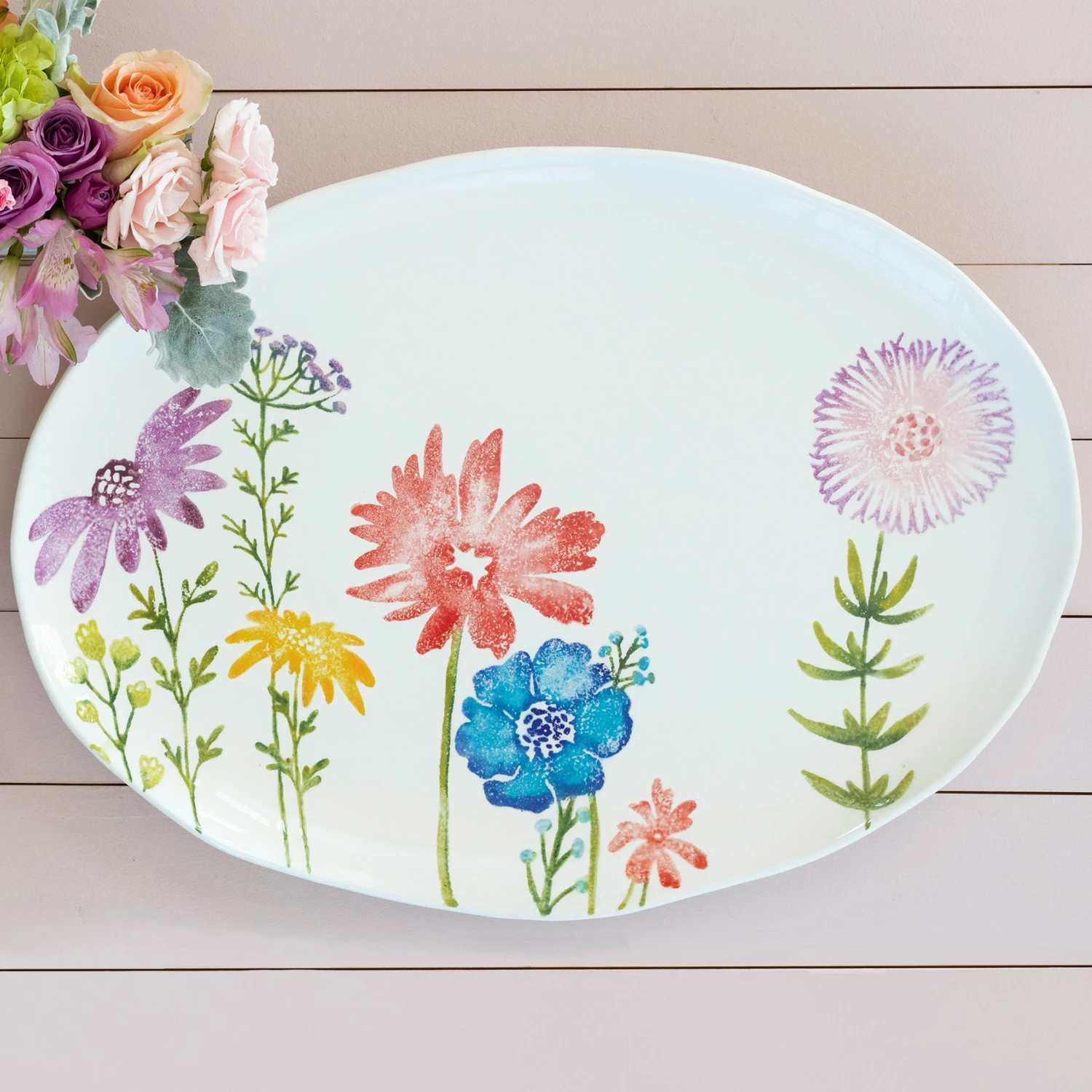 The handsponged and whimsical wildflowers of Fiori di Campo transport your table to the Italian countryside. The Fiori di Campo Large Oval Platter features a sweet scene of watercolor blooms and exudes the beauty of nature all year round.