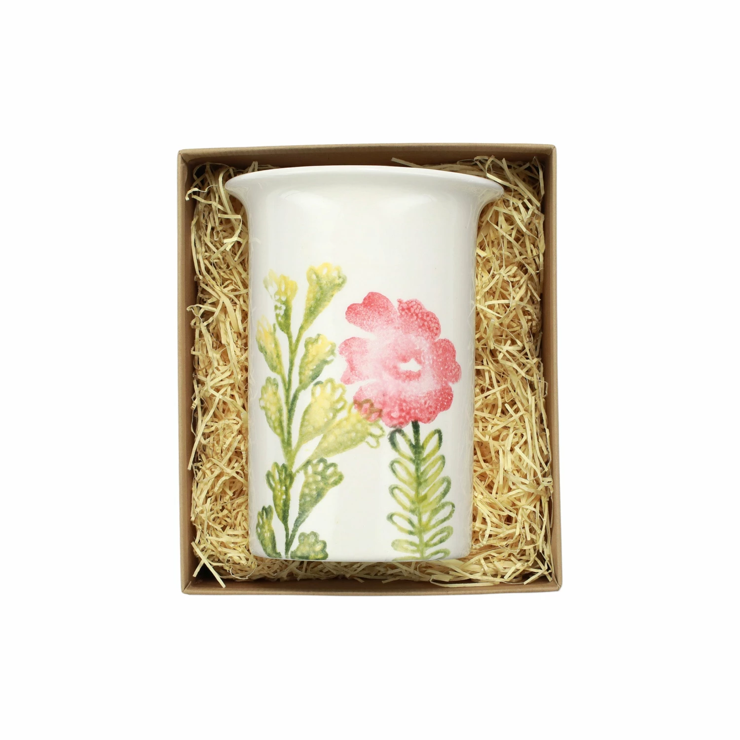 The handsponged and whimsical wildflowers of Fiori di Campo transport your table to the Italian countryside. The Fiori di Campo Small Vase features a sweet scene of watercolor blooms and exudes the beauty of nature all year round.