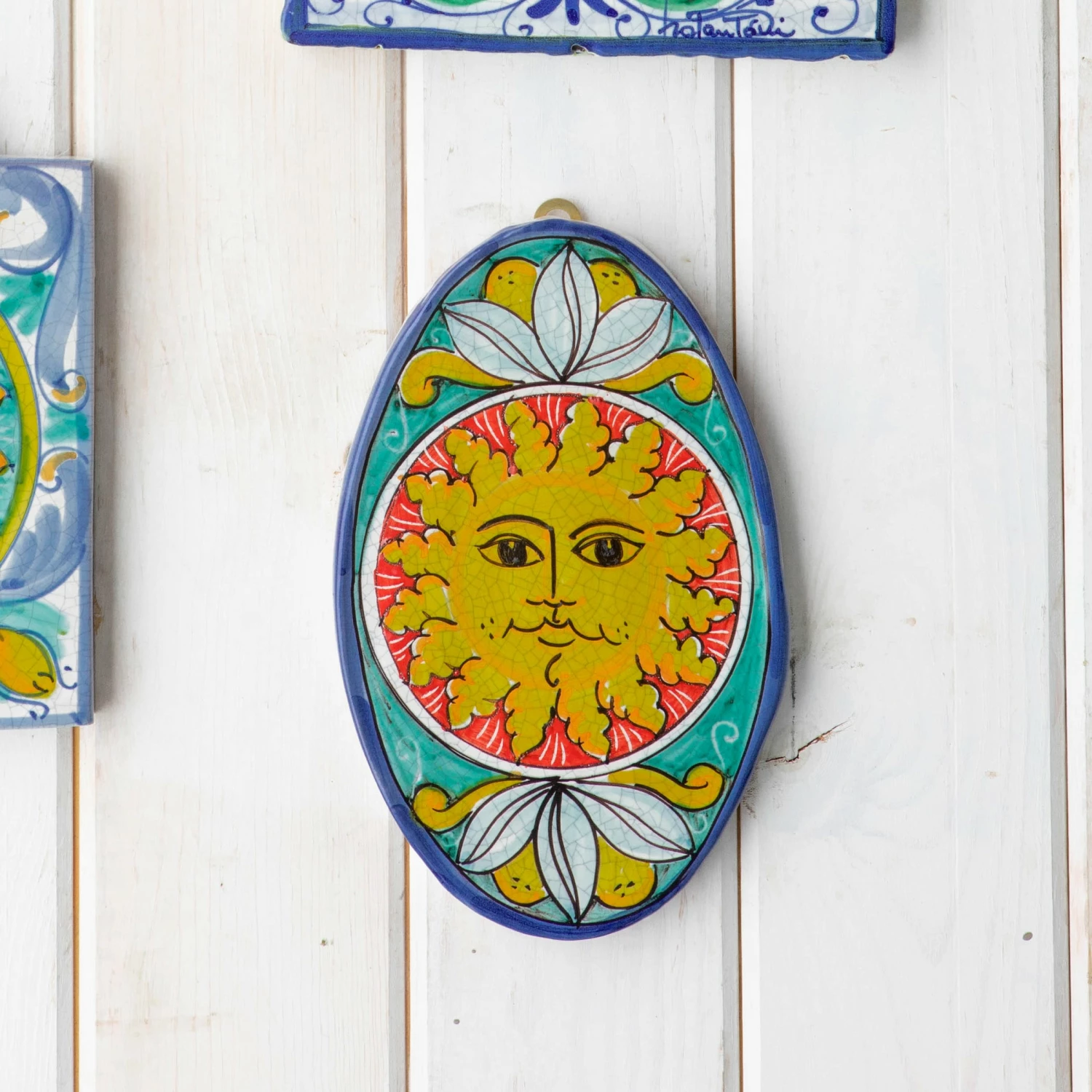 From VIETRI’s archives, the First Stones Sun Oval Wall Plaque brings good wishes and the history of Sicilian culture to your home.