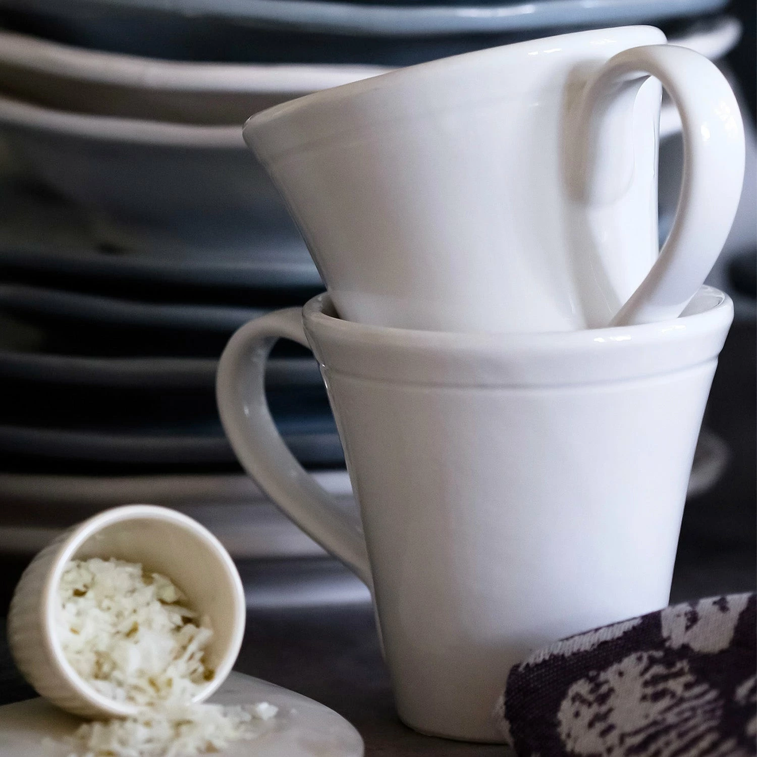 Handmade into a unique conic shape, the Fresh Mug is reminiscent of a fashionable, well-traveled lifestyle. Inspired by Italy, this go-to piece can easily become a staple in your studio apartment or a simple addition to well-dressed dinner parties.
