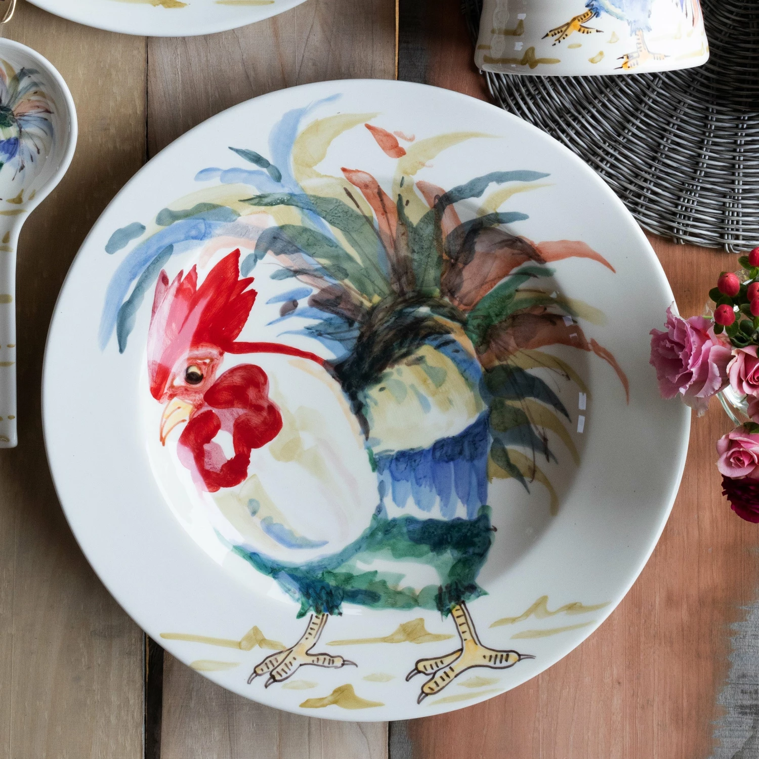The rooster is a symbol of prosperity and positivity in Italy, and the watercolor brushstrokes and vibrant hues of the Gallo Rimmed Round Platter will invite that good fortune and Italian optimism into your home.