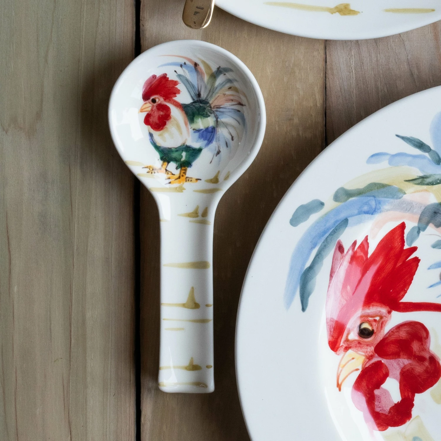 The rooster is a symbol of prosperity and positivity in Italy, and the watercolor brushstrokes and vibrant hues of the Gallo Spoon Rest will invite that good fortune and Italian optimism into your home.