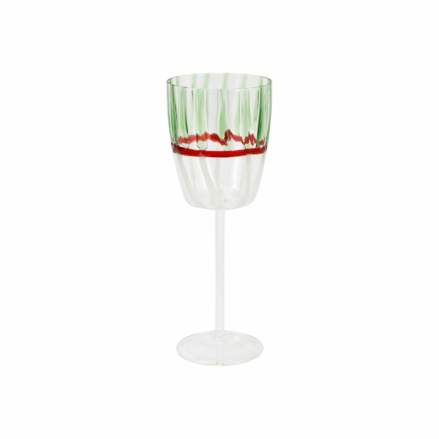 The Garland Wine Glass combines contemporary design with traditional style in a mouthblown piece fit for festive and elegant gatherings or casual holiday brunches alike.