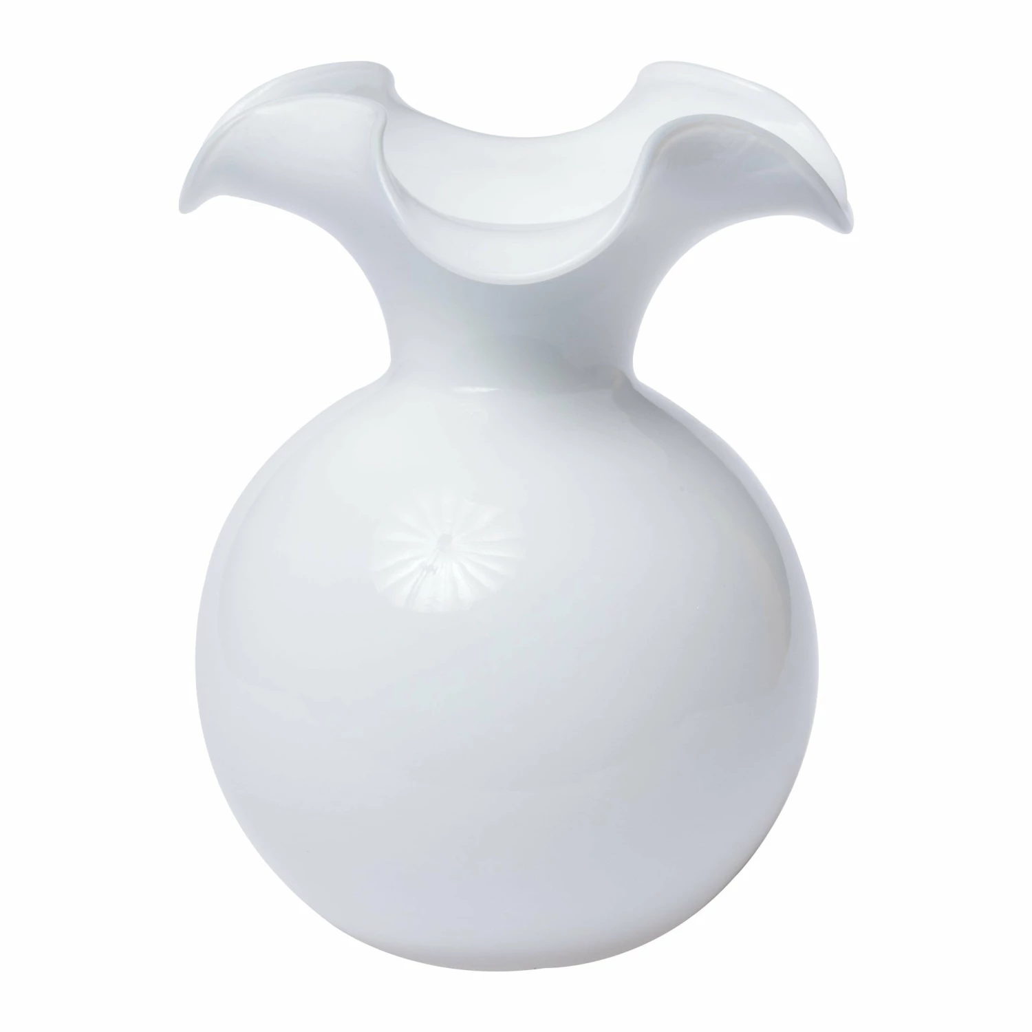 Skilled Tuscan artisans reimagine the beauty and delicate nature of the hibiscus flower in our mouthblown Hibiscus Glass. Curving, romantic, and fresh, the collection exudes easy elegance. The Hibiscus Glass White Medium Fluted Vase is a beautiful complement to any floral arrangement.