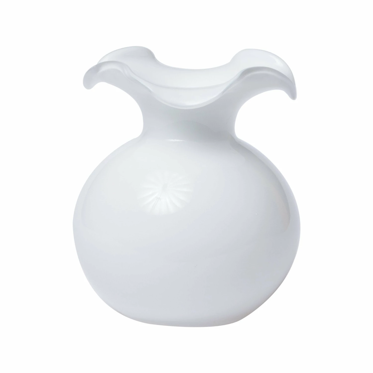 Skilled Tuscan artisans reimagine the beauty and delicate nature of the hibiscus flower in our mouthblown Hibiscus Glass. Curving, romantic, and fresh, the collection exudes easy elegance. The crispness of the Hibiscus Glass White Small Fluted Vase is a gorgeous backdrop for a floral arrangement.