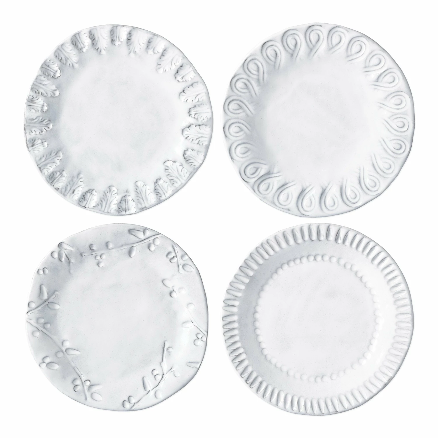Italian for enchantment, Incanto is inspired by Italian art, the landscape, and Venetian history. The Incanto Assorted Canape Plates (set of four) pay homage to Veniceβs famous lace, gardens, and architecture. Delightfully detailed, these charming plates are perfect for appetizers, as a bread plate, or for small desserts.