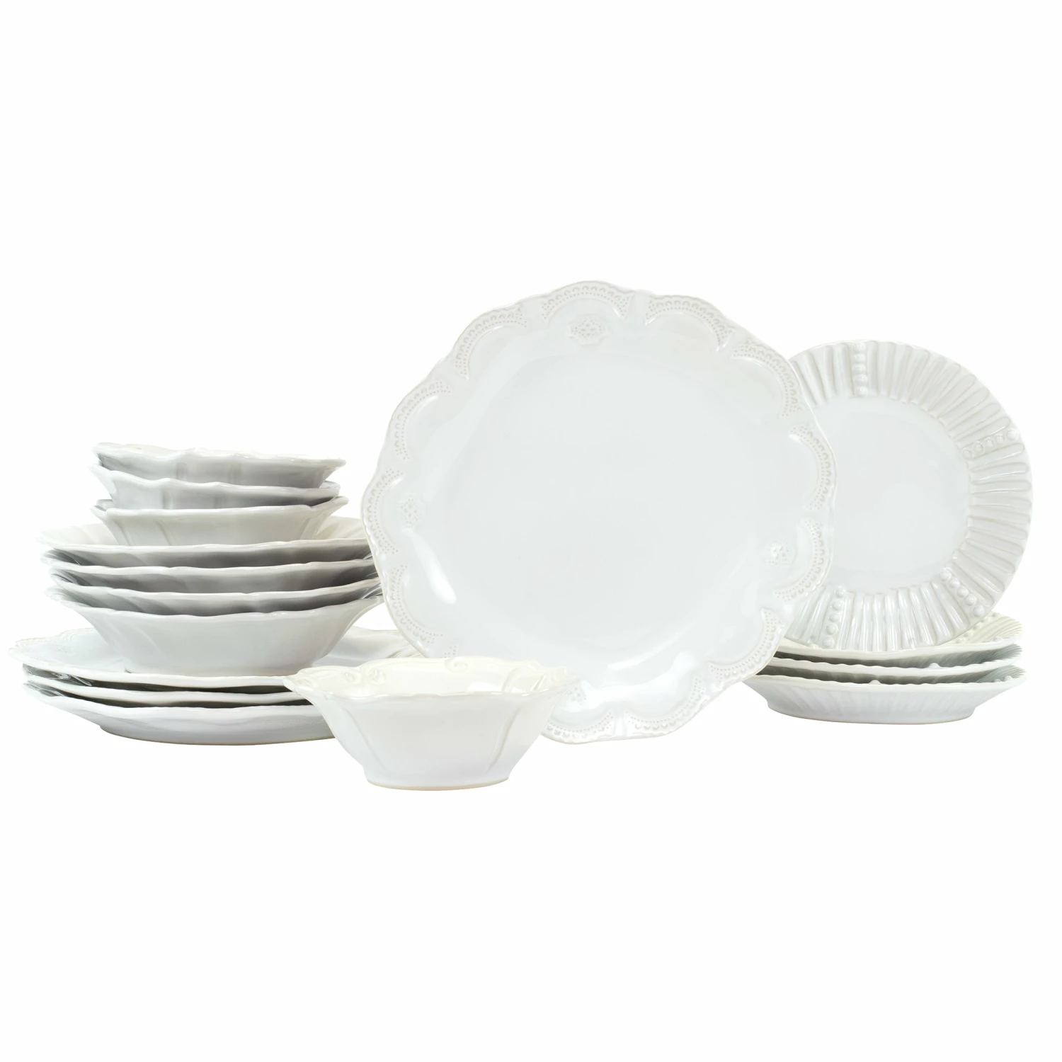 Italian for enchantment, Incanto is inspired by Italy’s art, landscape, and Venetian history. The soft ripples of the Adriatic Sea, the columns of the Palladian villas along the Brenta River, the beautiful lace of Veniceβs Burano Island, and 17th century baroque architecture are reimagined in the dinnerwareβs design, and the result is a captivating collection made to be mixed and matched. The Incanto Assorted Sixteen-Piece Place Setting includes four assorted European dinner plates, four assorted salad plates, four assorted pasta bowls, and four assorted cereal bowls.