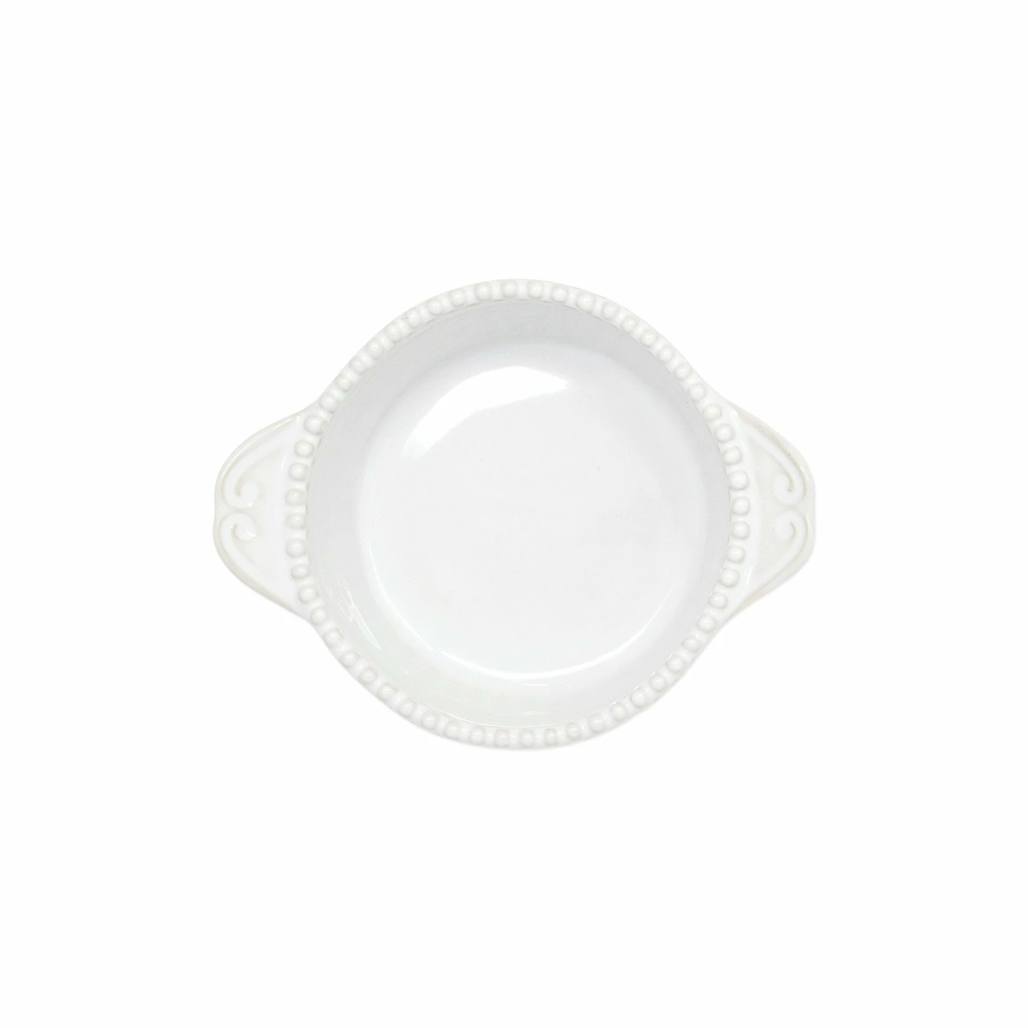 Italian for enchantment, Incanto is inspired by Italian art, the landscape, and Venetian history. The intricate designs on the Incanto Stone White Stripe Handled Small Baker honor the columns of the Palladian villas along the Brenta River. Oven-safe, this baker is the definition of form and function.