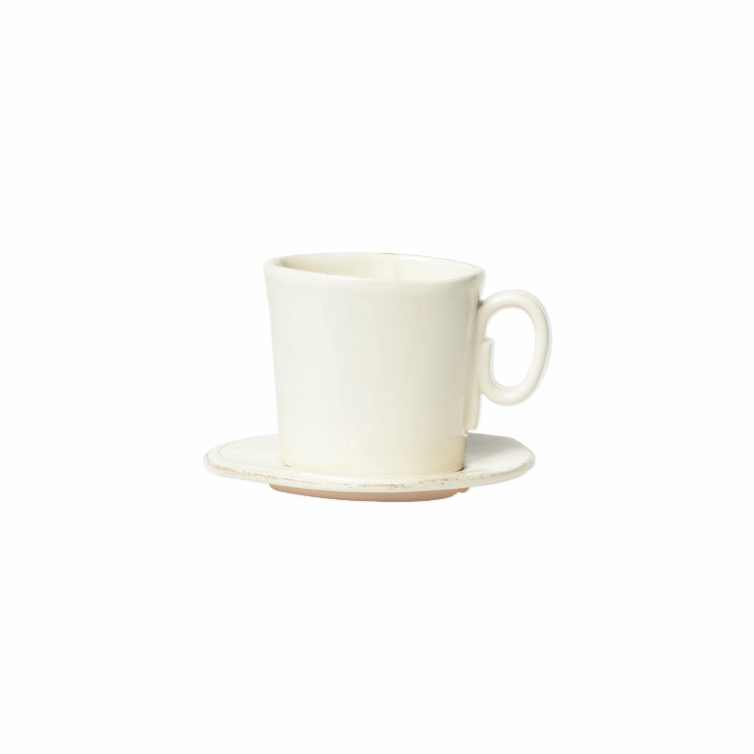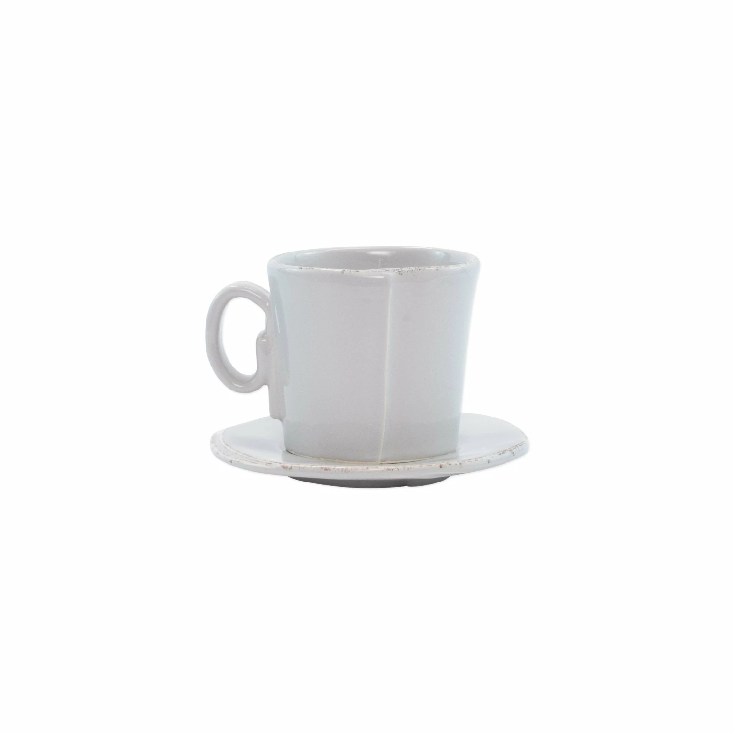 Beloved for its sophisticated simplicity, versatility, and durability, Lastra is our bestselling collection. The understated elegance, clean lines, and unique shape of the Lastra Espresso Cup and Saucer make it a timeless choice for any table and a charming way to enjoy your coffee. Lastra’s design was inspired by the circular wooden slabs used for centuries to create the outer mold in cheesemaking throughout Italy. When fashioned together with twine, the hoop was left with a slight overlap to help maintain the shape of the cheese mold. Maestro molder Stefano Roselli incorporates the overlapping detail into the entire design, from its foot to its rim. A dark dusting on the edges of each piece suggests the ash that was used to preserve these cheeses and highlights each unique silhouette.