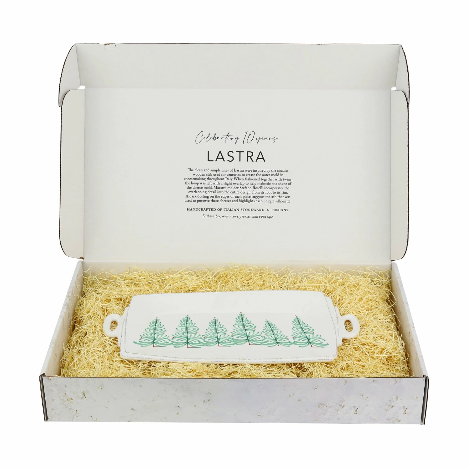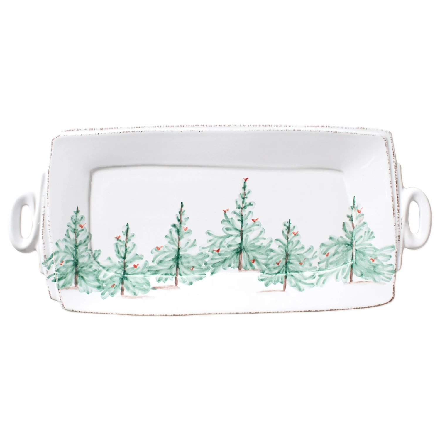 Host your annual holiday get-togethers in Italian style when you serve an assortment of fresh baked cookies on the Lastra Holiday Handled Rectangular Platter. Handpainted on Italian stoneware in Tuscany, this collection adds a festive touch to any winter gathering.