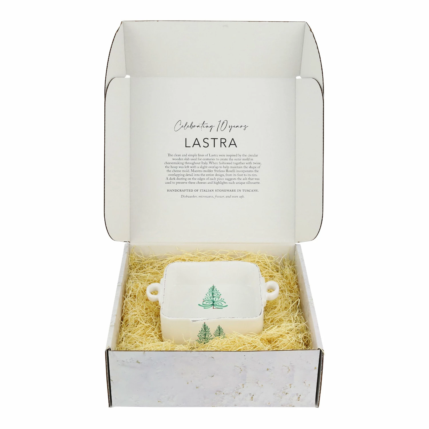 The Lastra Holiday Square Baker is an irresistibly elegant baking piece to have in your collection. An overlapping wooden mold, used for centuries to form cheeses throughout Italy, inspired this collection.