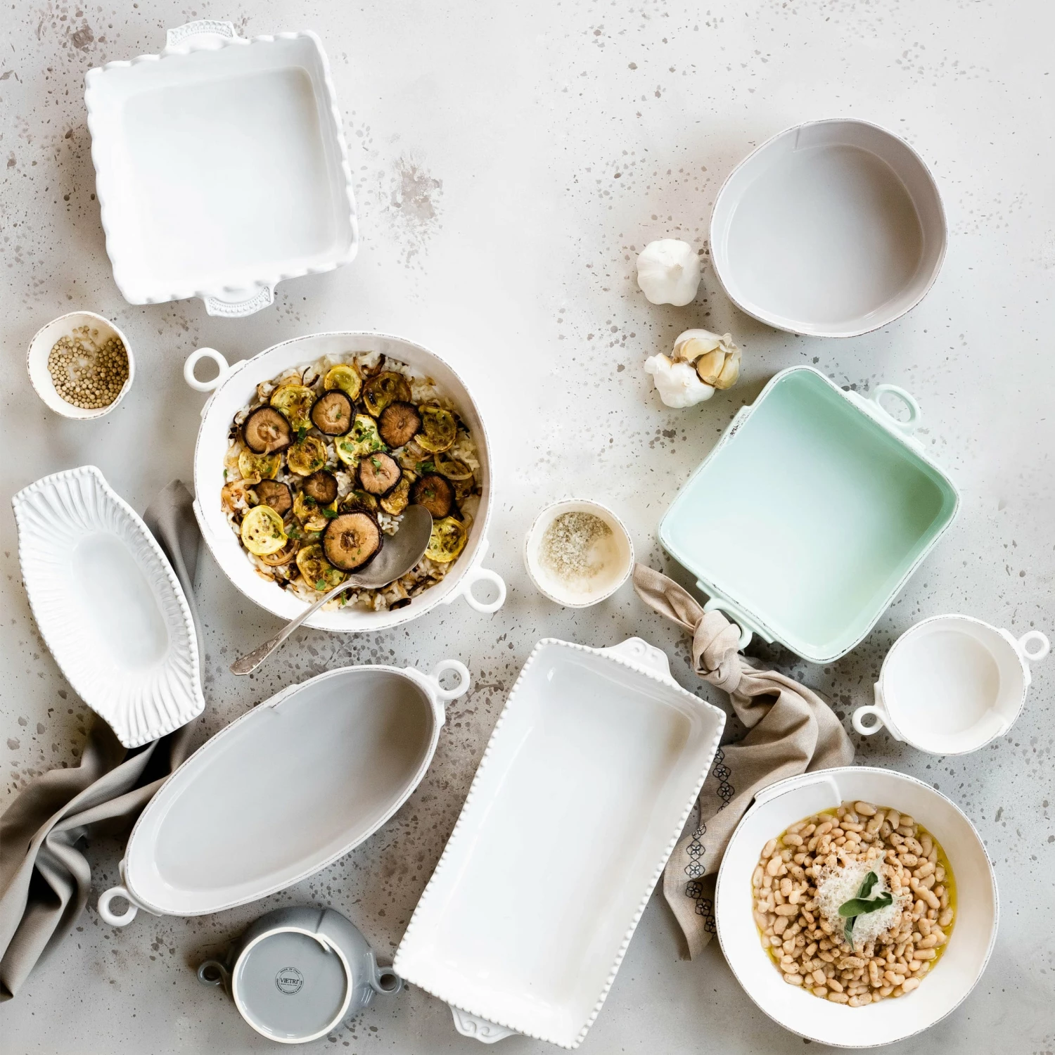 Beloved for its sophisticated simplicity, versatility, and durability, Lastra is our bestselling collection. The understated elegance, clean lines, and unique shape of the Lastra Medium Serving Bowl make it a timeless serving piece for your table. Lastraโs design was inspired by the circular wooden slabs used for centuries to create the outer mold in cheesemaking throughout Italy. When fashioned together with twine, the hoop was left with a slight overlap to help maintain the shape of the cheese mold. Maestro molder Stefano Roselli incorporates the overlapping detail into the entire design, from its foot to its rim. A dark dusting on the edges of each piece suggests the ash that was used to preserve these cheeses and highlights each unique silhouette.