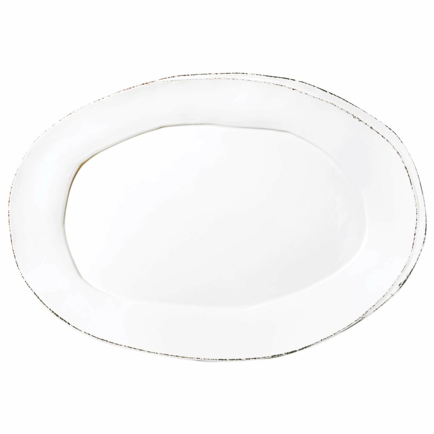 Beloved for its sophisticated simplicity, versatility, and durability, Lastra is our bestselling collection. The understated elegance, clean lines, and unique shape of the Lastra Oval Platter make a timeless and elegant serving piece for any table. Lastra’s design was inspired by the circular wooden slabs used for centuries to create the outer mold in cheesemaking throughout Italy. When fashioned together with twine, the hoop was left with a slight overlap to help maintain the shape of the cheese mold. Maestro molder Stefano Roselli incorporates the overlapping detail into the entire design, from its foot to its rim. A dark dusting on the edges of each piece suggests the ash that was used to preserve these cheeses and highlights each unique silhouette.