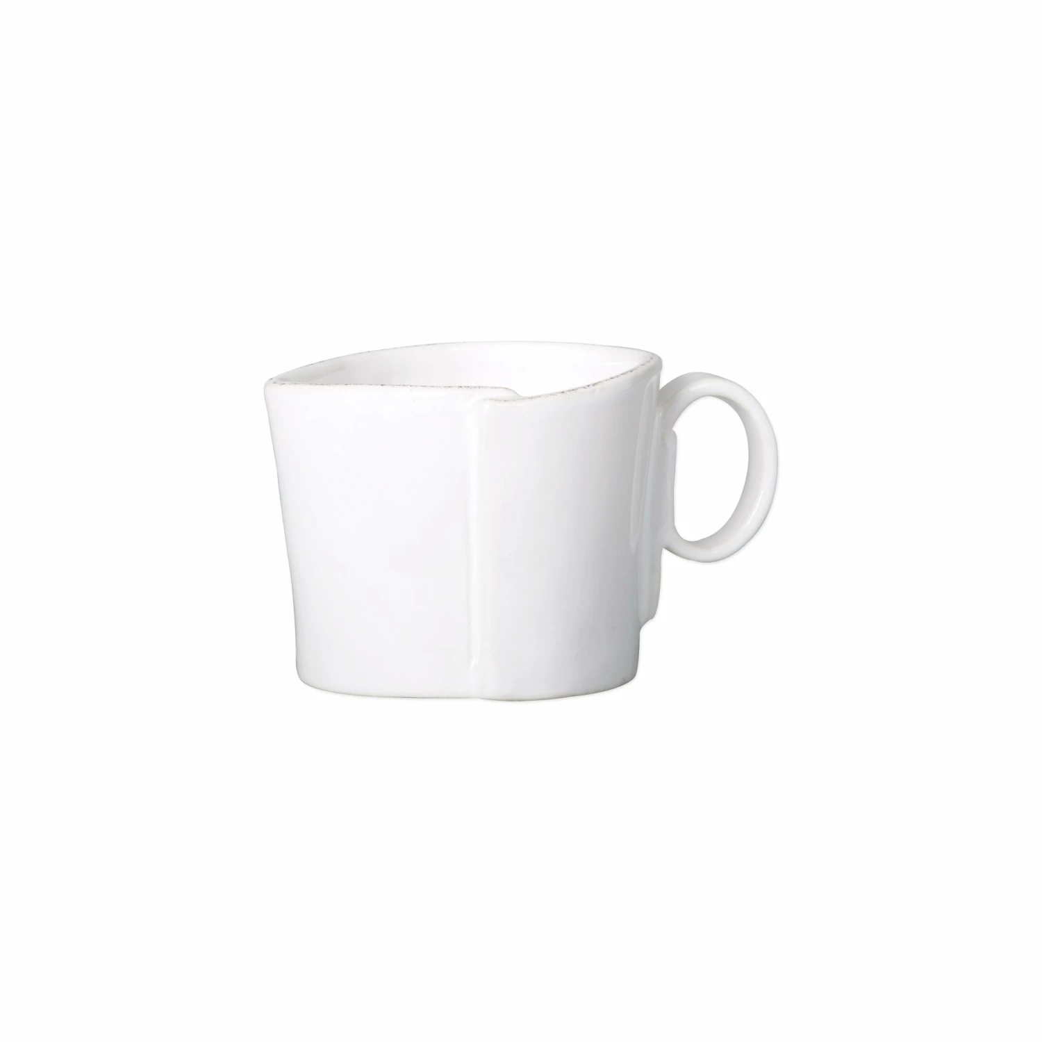 Beloved for its sophisticated simplicity, versatility, and durability, Lastra is our bestselling collection. The understated elegance, clean lines, and unique shape of the Lastra White Creamer make it a charming piece for your home. Lastraβs design was inspired by the circular wooden slabs used for centuries to create the outer mold in cheesemaking throughout Italy. When fashioned together with twine, the hoop was left with a slight overlap to help maintain the shape of the cheese mold. Maestro molder Stefano Roselli incorporates the overlapping detail into the entire design, from its foot to its rim. A dark dusting on the edges of each piece suggests the ash that was used to preserve these cheeses and highlights each unique silhouette.